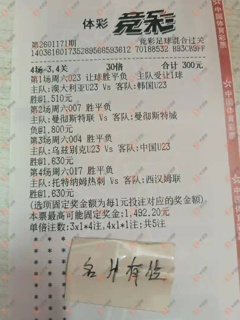 竞彩 20260117期 晒中