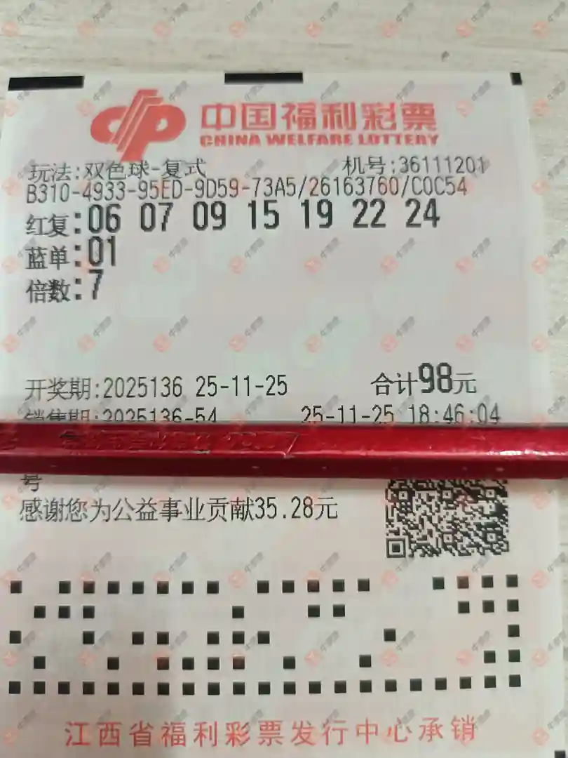 双色球 2025136期 晒中
