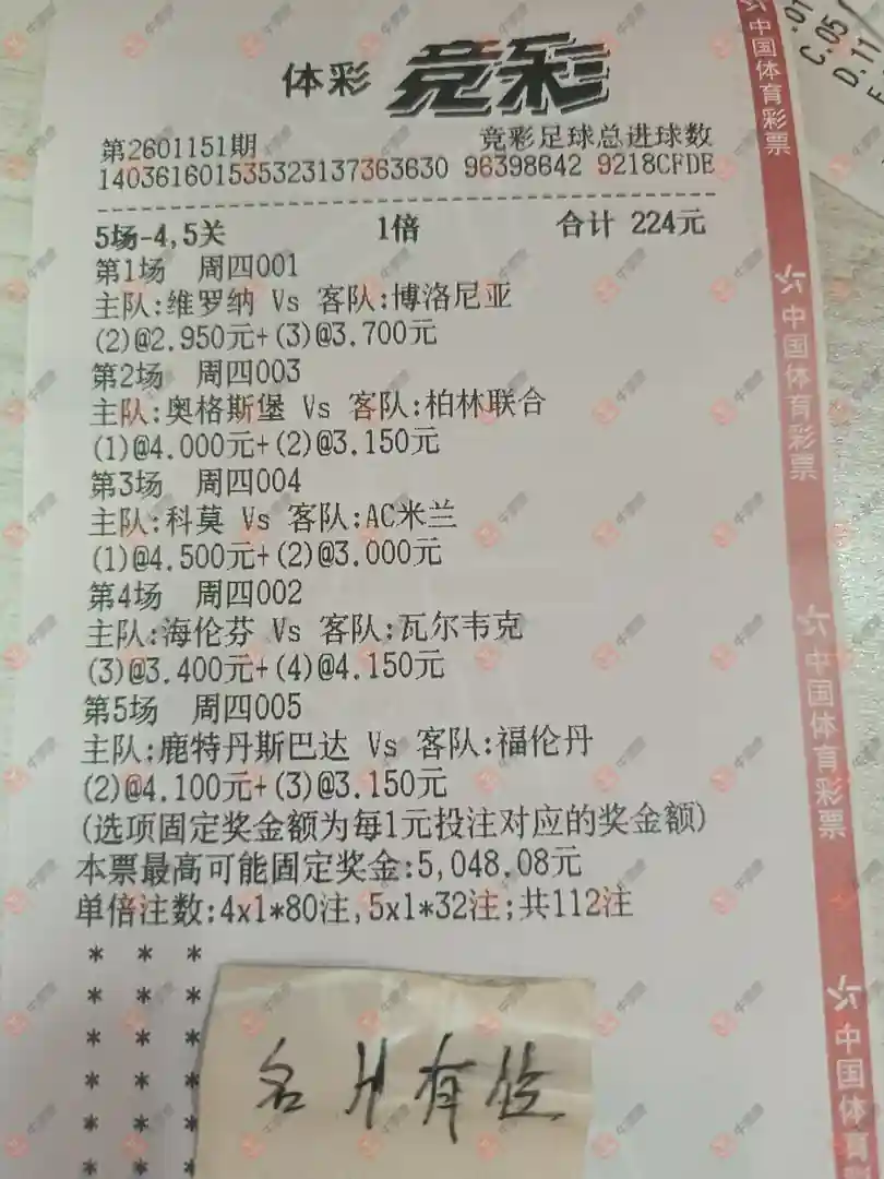 竞彩 20260115期