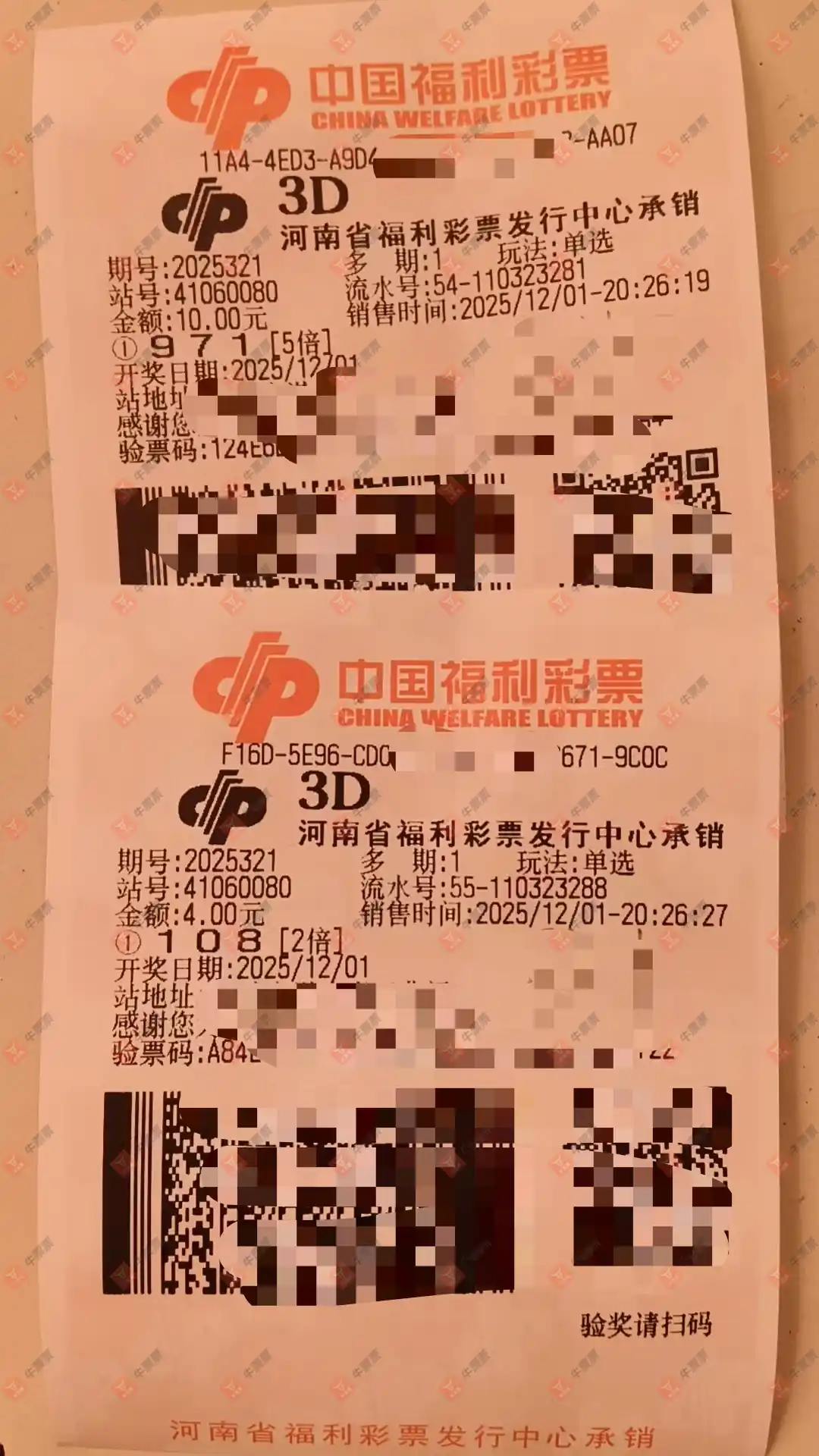 福彩3D 2025320期