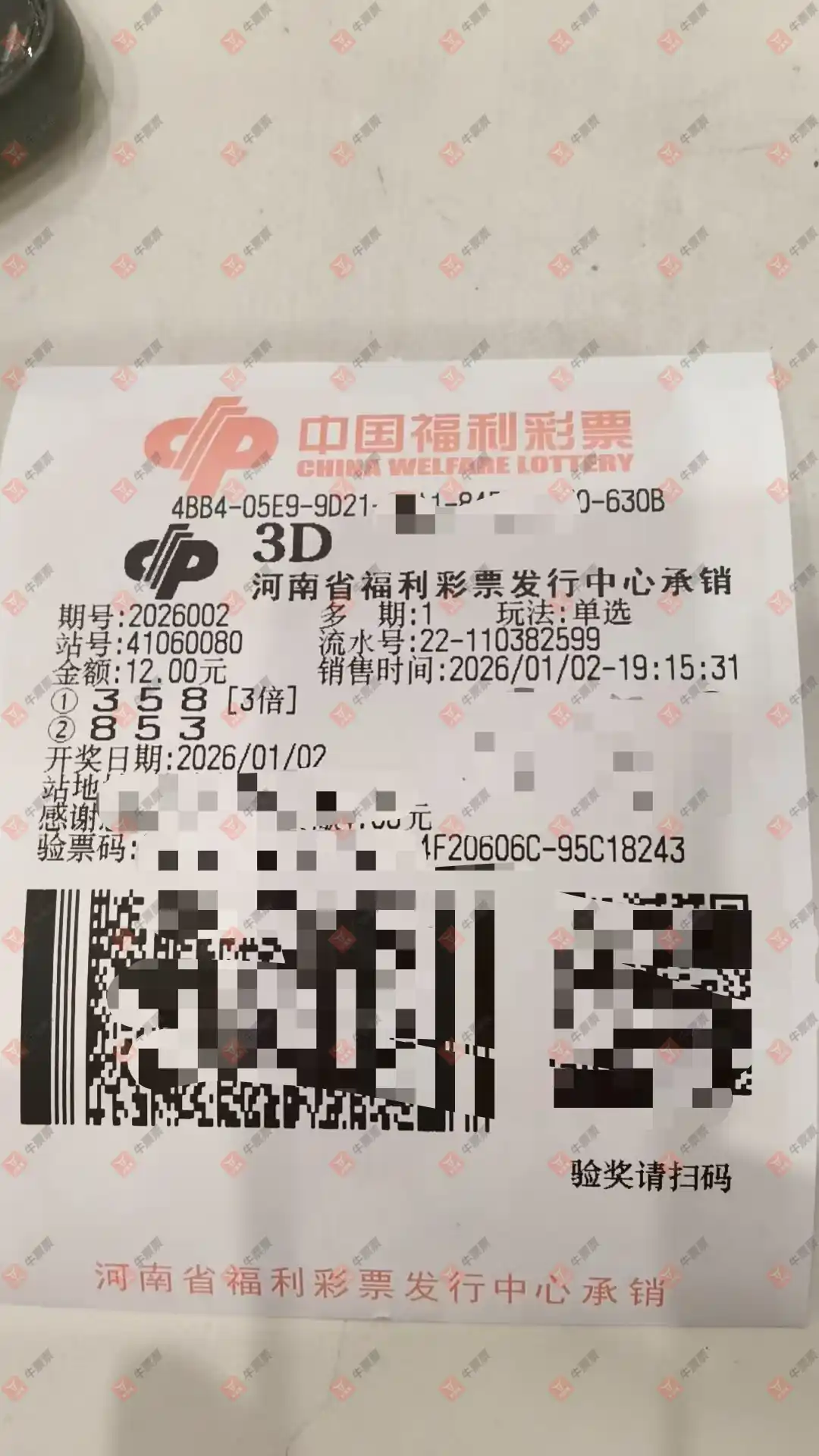 福彩3D 2026001期