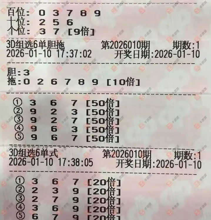 福彩3D 2026010期