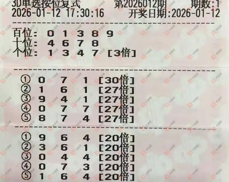 福彩3D 2026012期