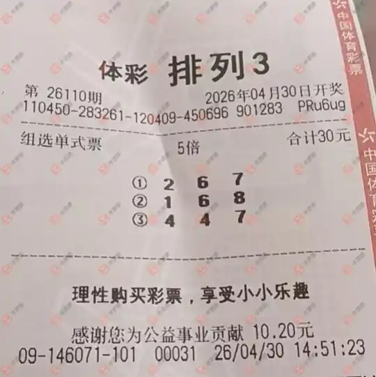 福彩3D 2026110期