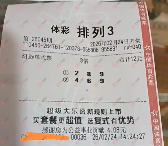 福彩3D 2026040期
