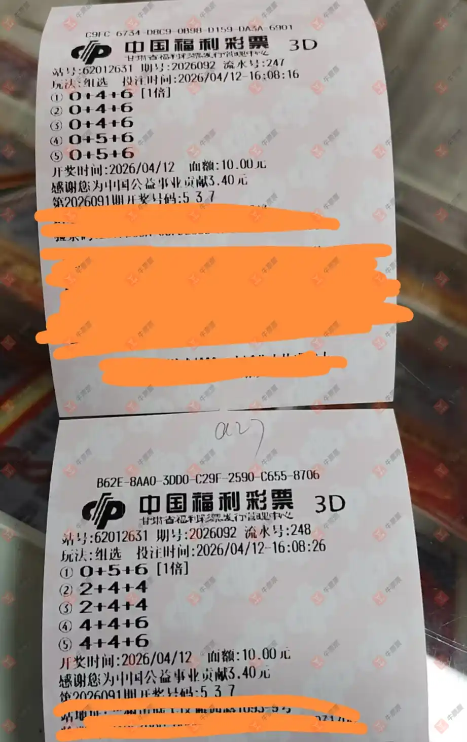 福彩3D 2026094期 晒中