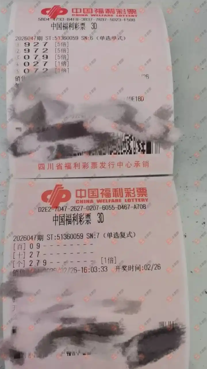 福彩3D 2026058期 晒中
