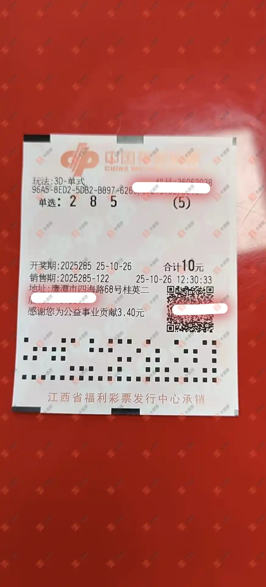 福彩3D 2025285期