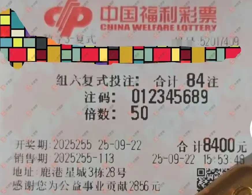福彩3D 2025255期 晒中