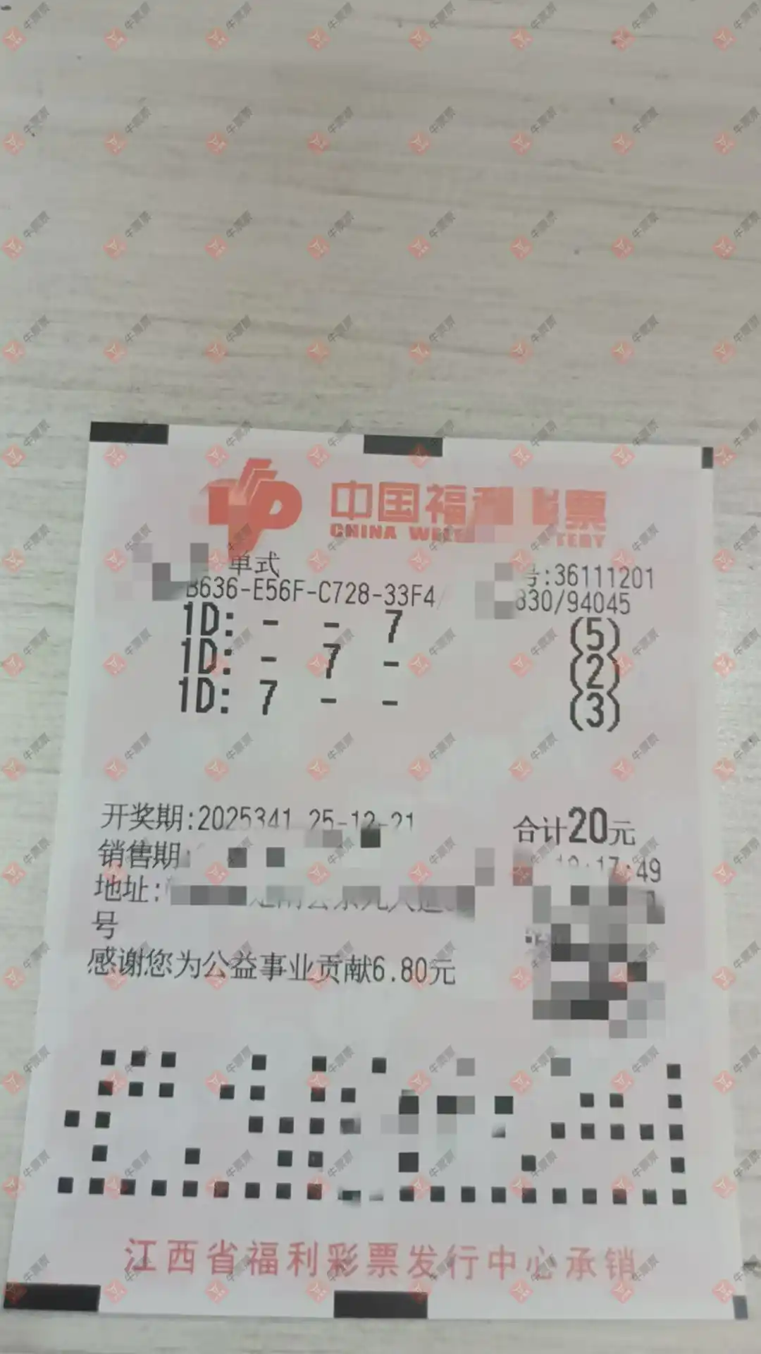 福彩3D 2025340期 晒中