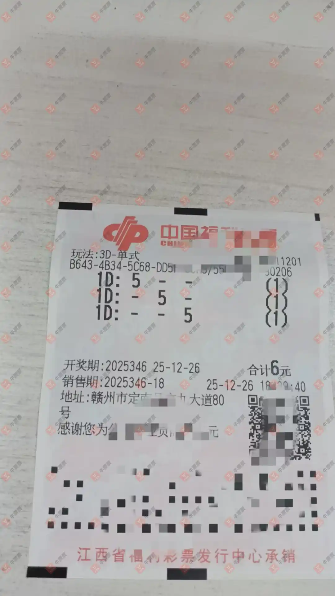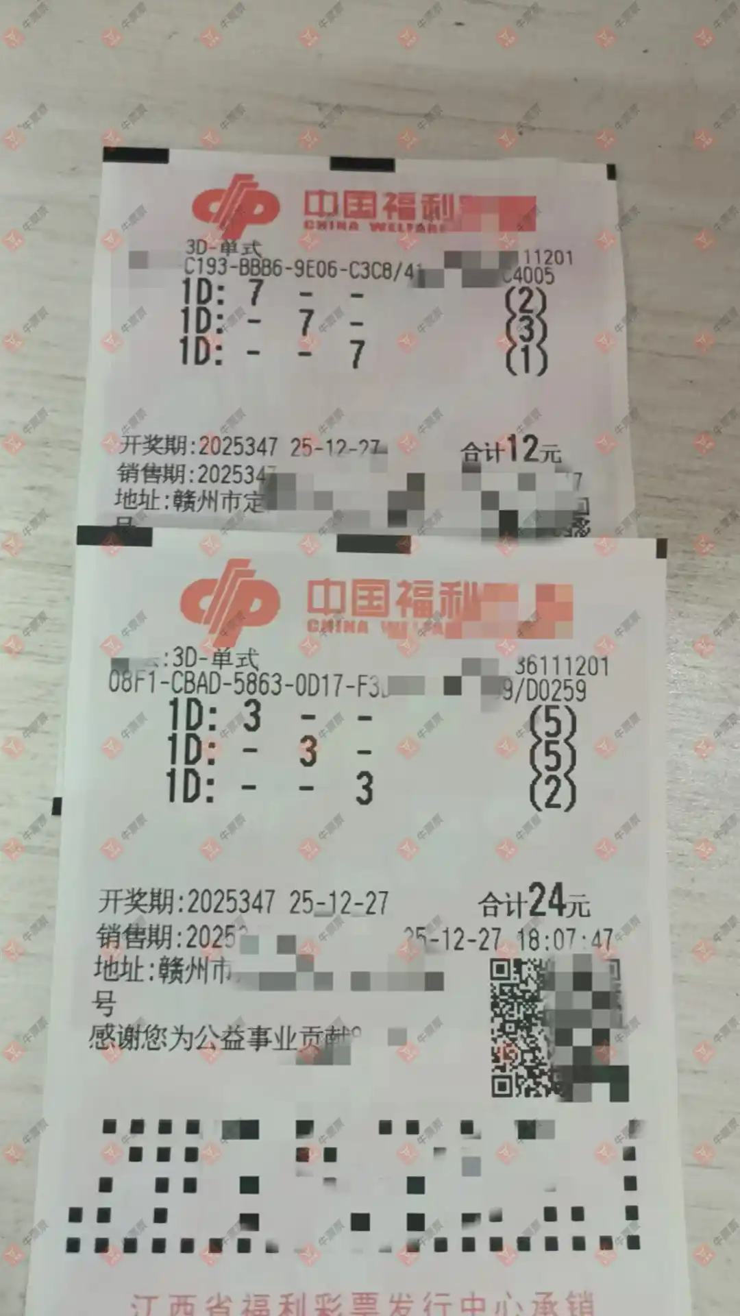 福彩3D 2025344期 晒中