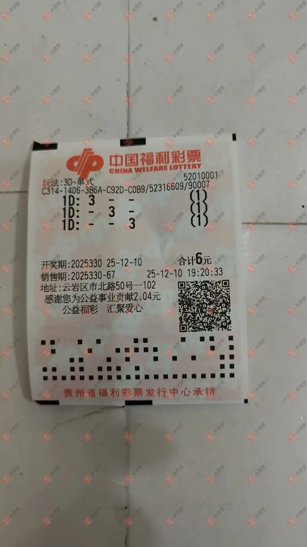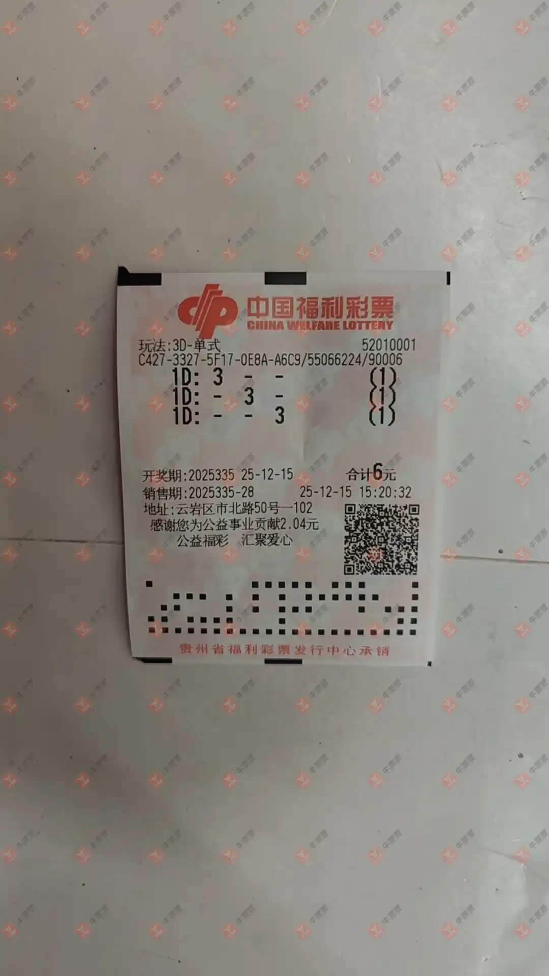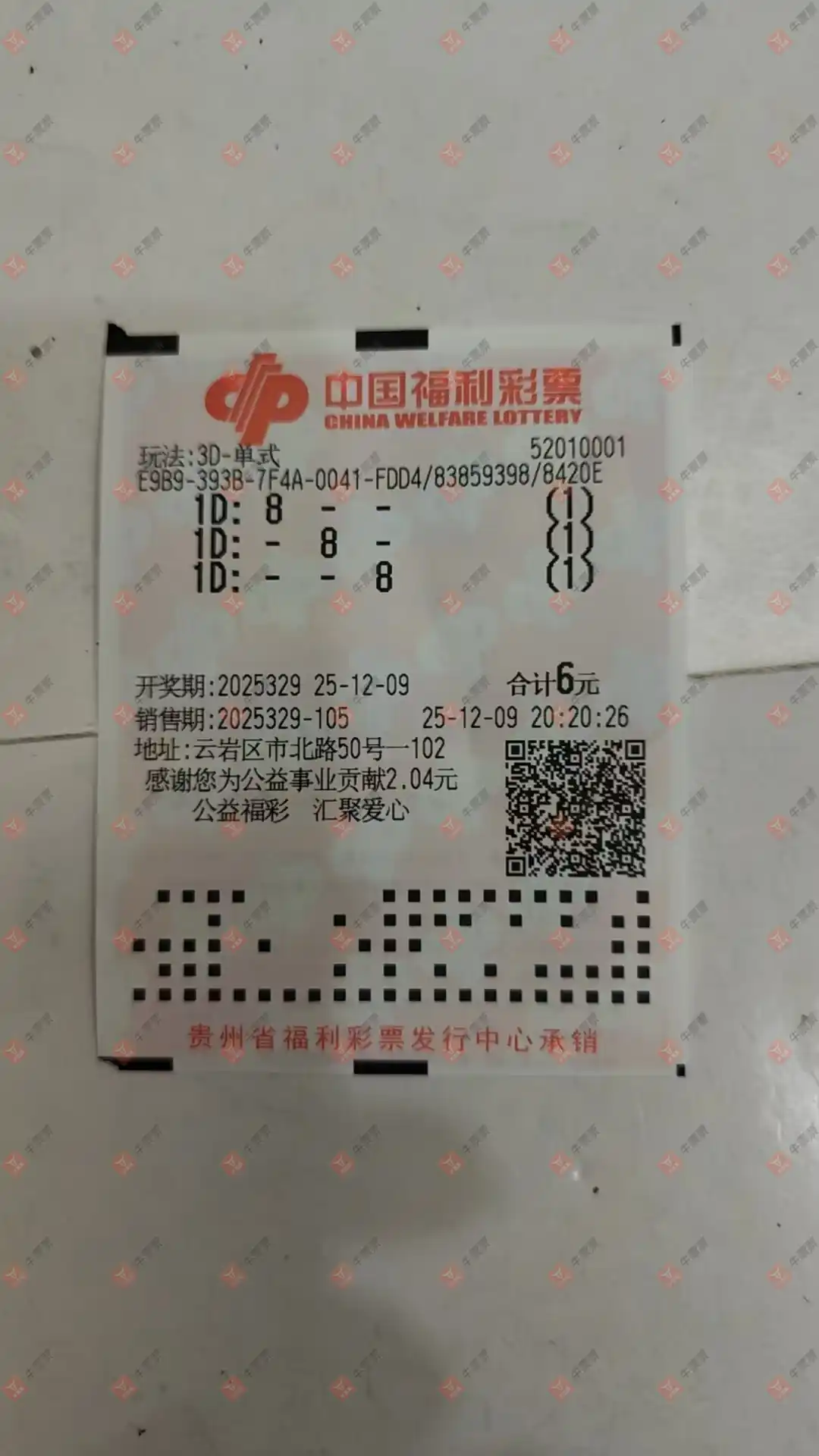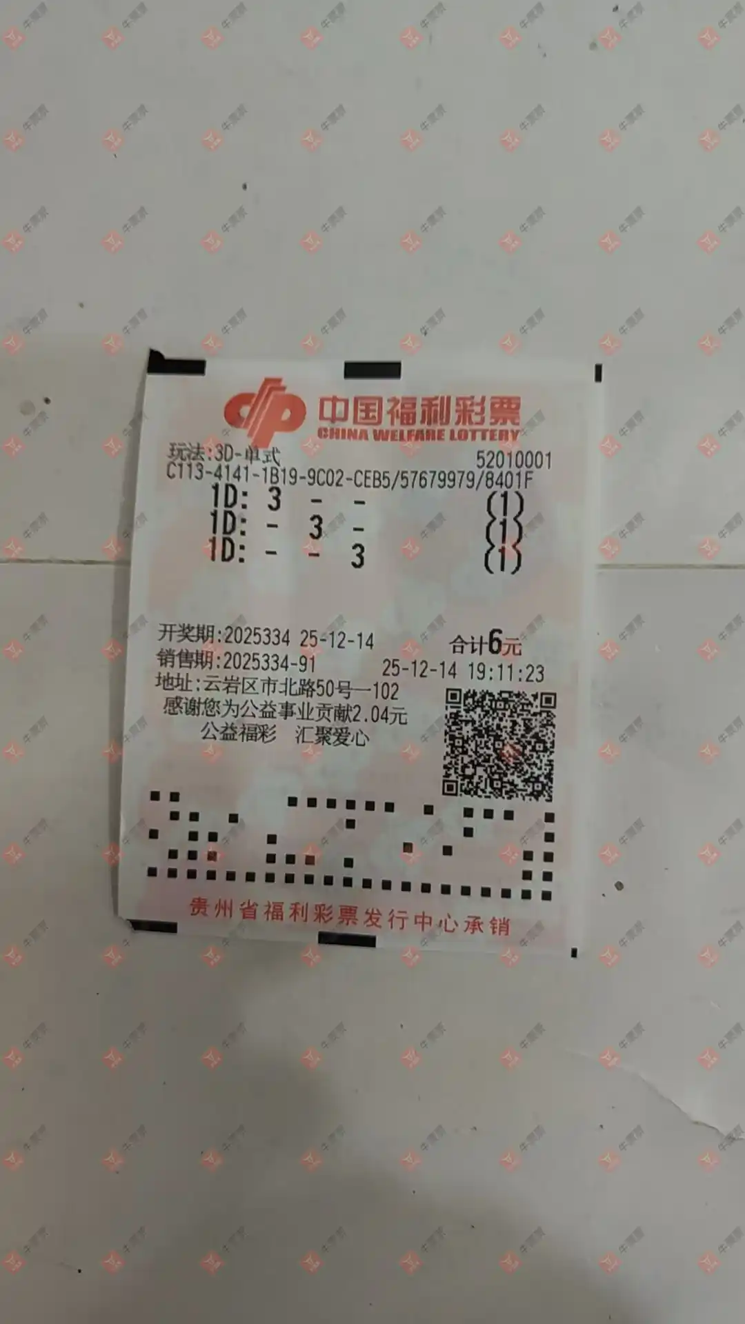 福彩3D 2025328期 晒中