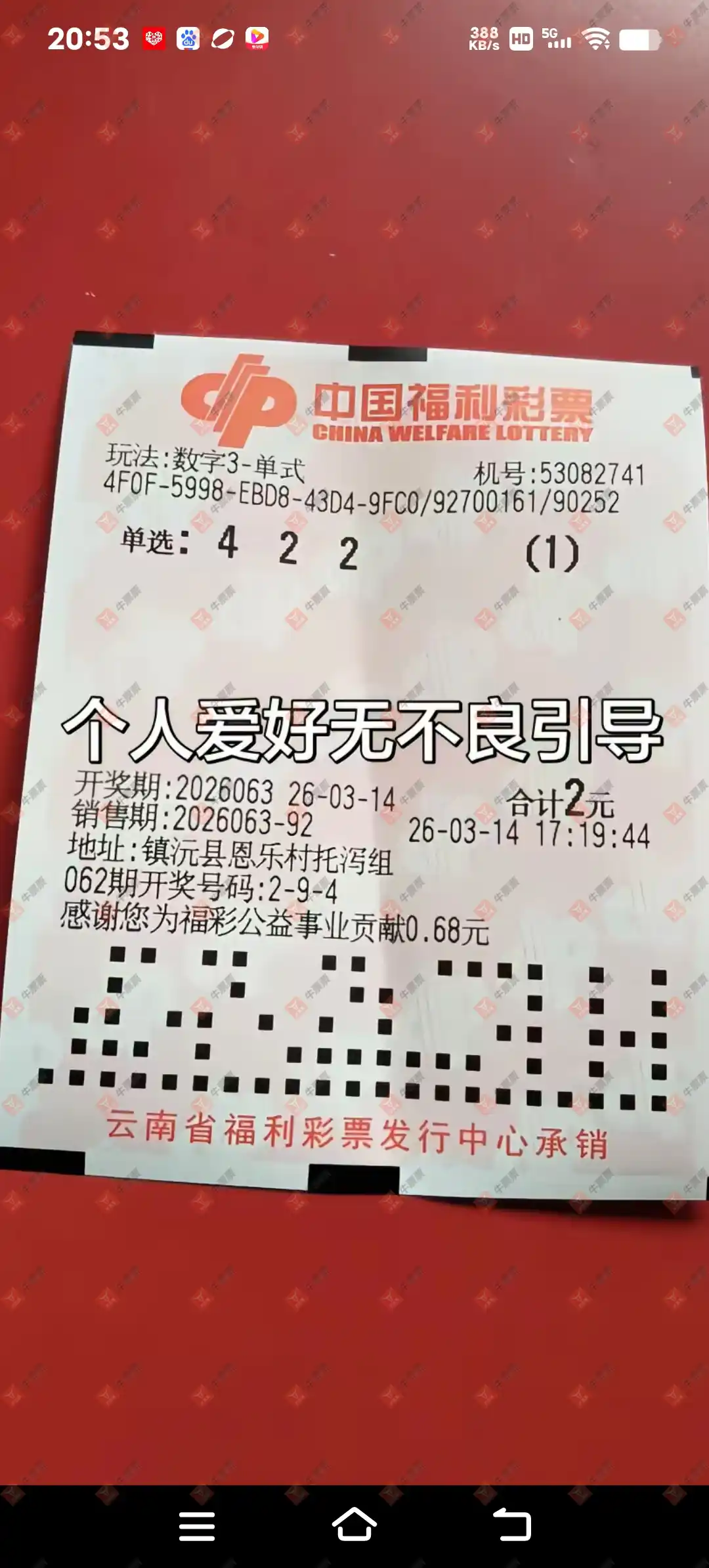 福彩3D 2026063期