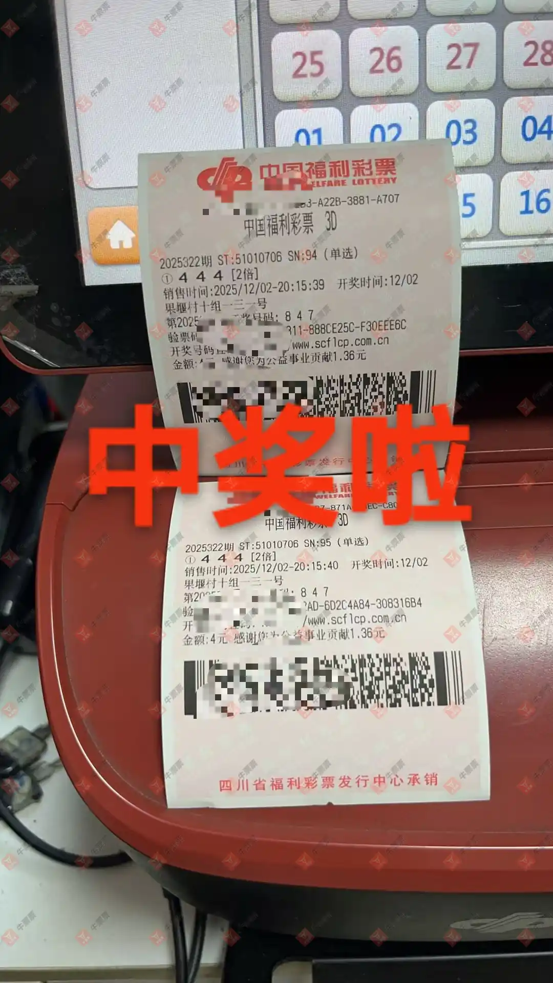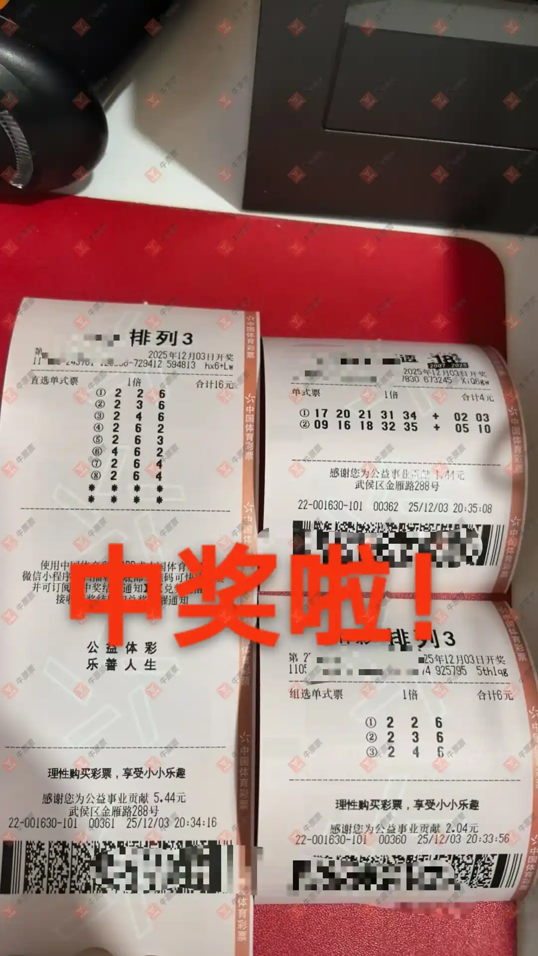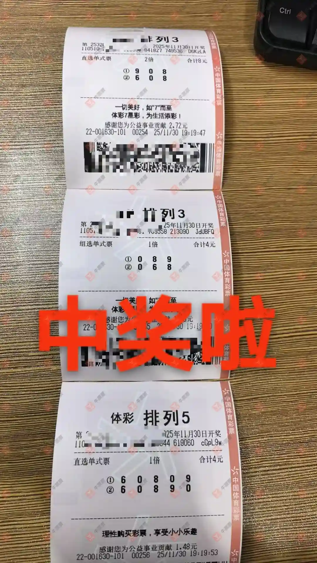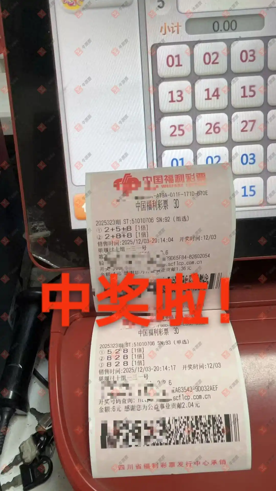 福彩3D 2025325期 晒中