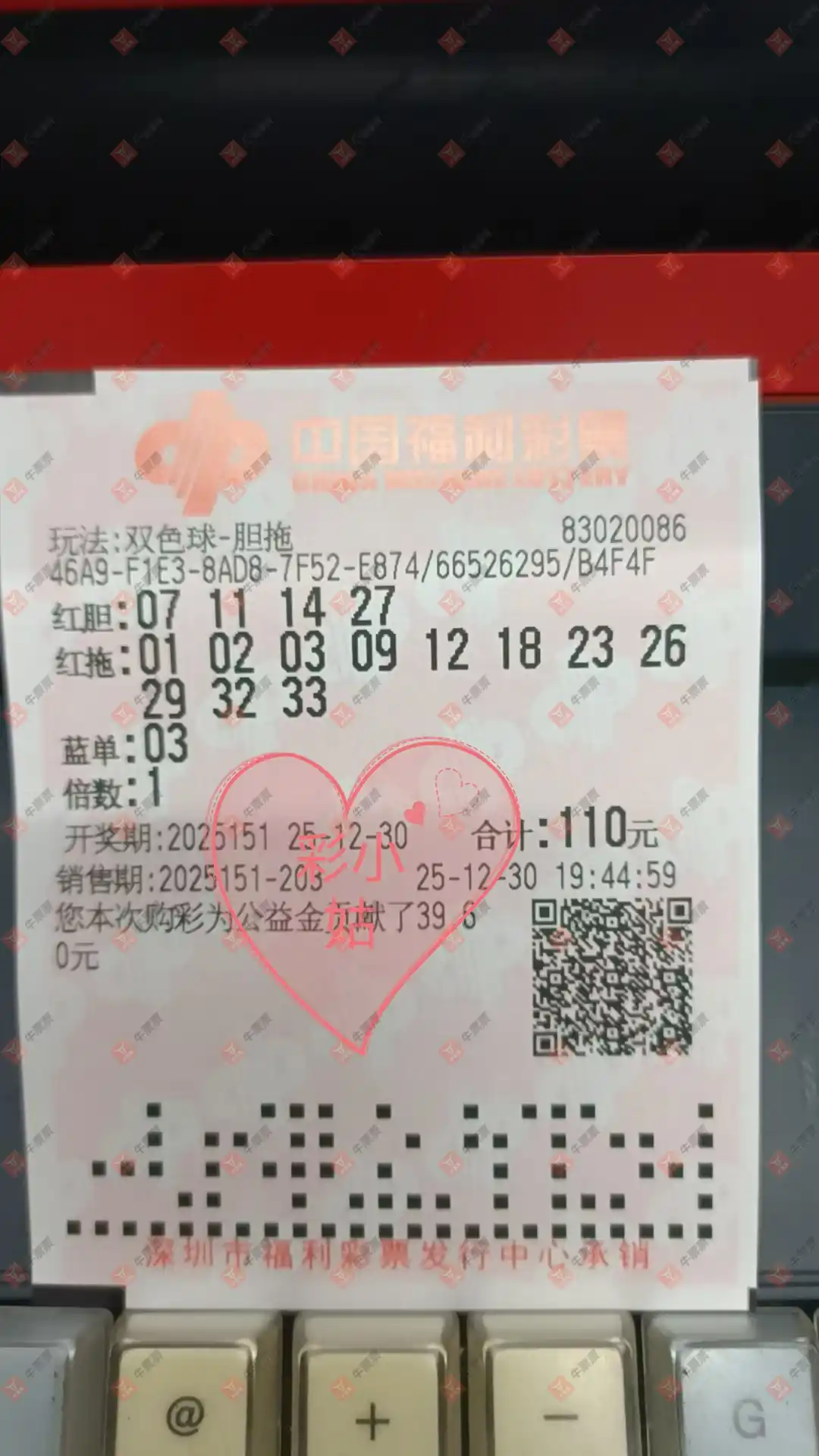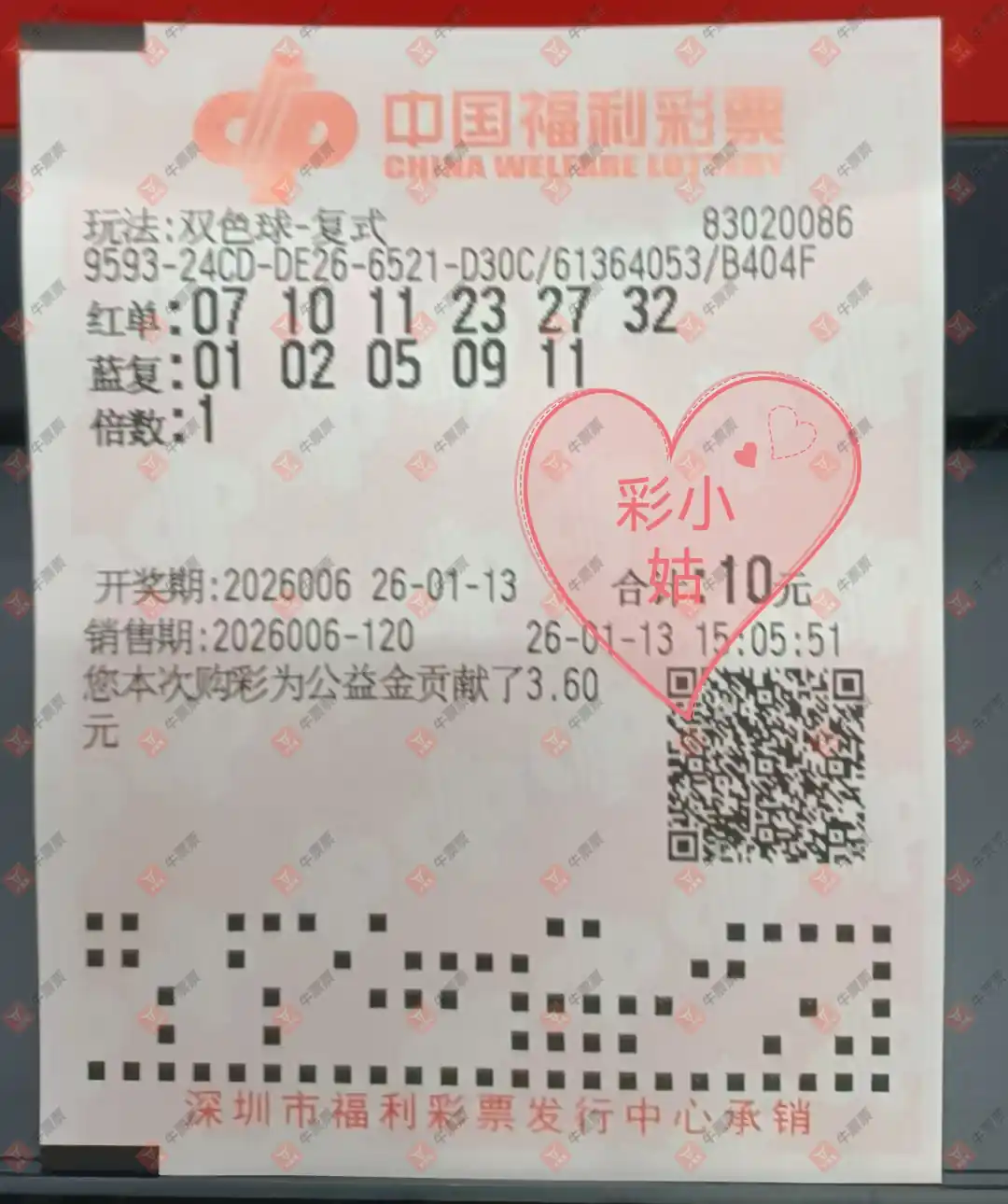 双色球 2026003期 晒中