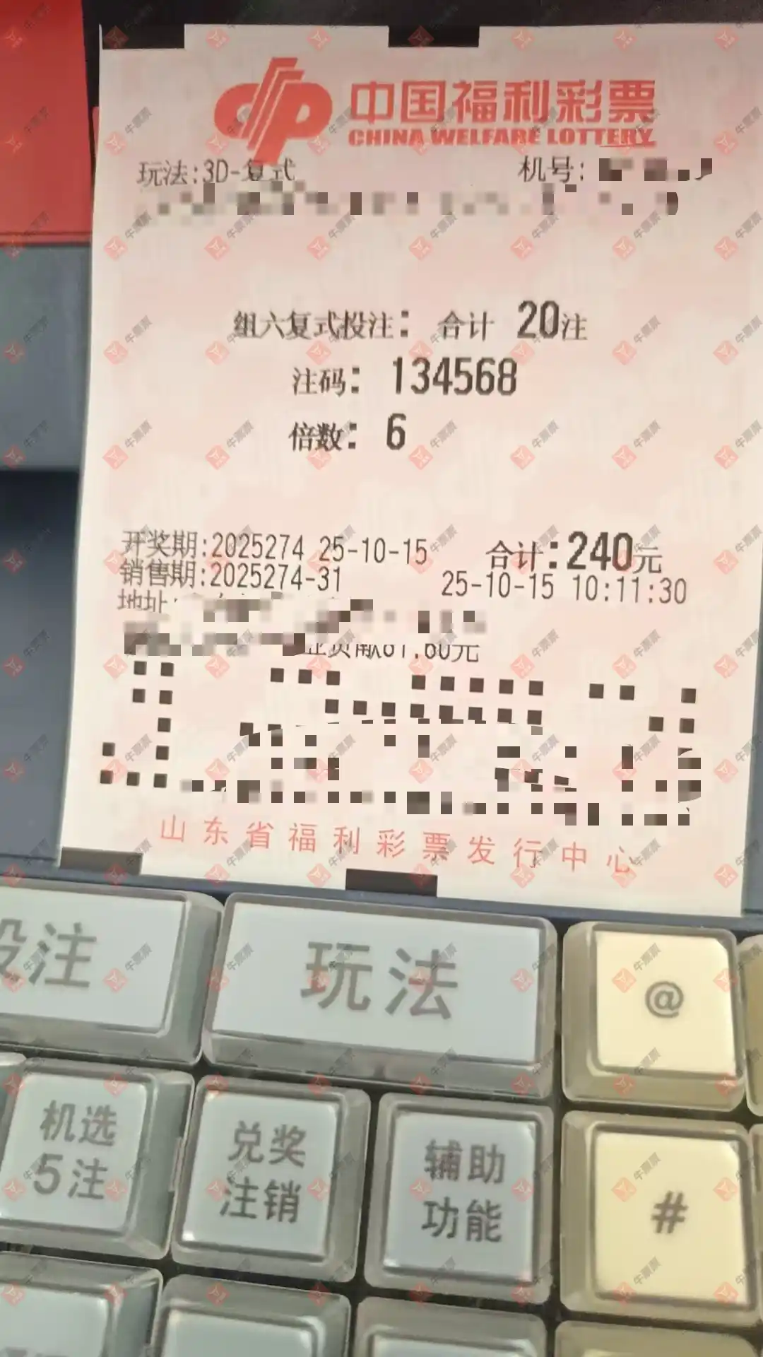 福彩3D 2024067期 晒中