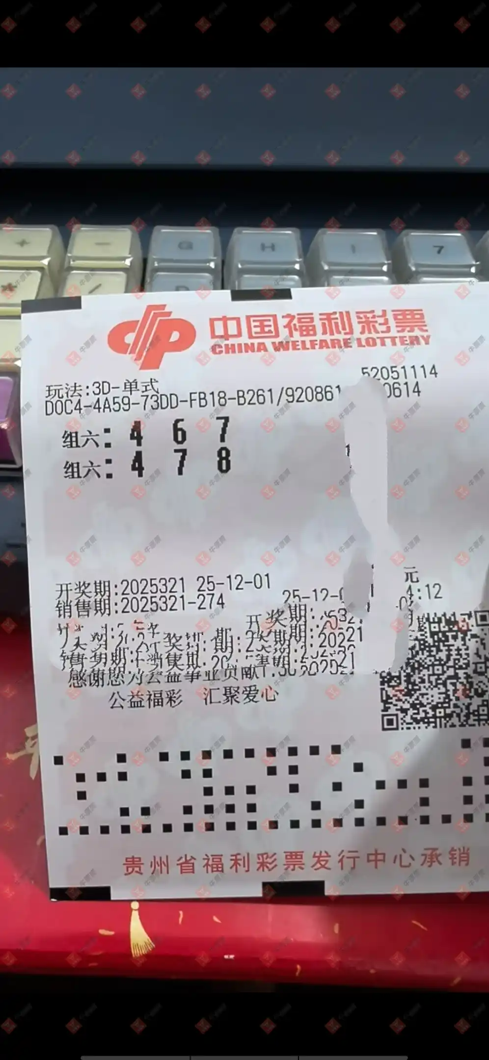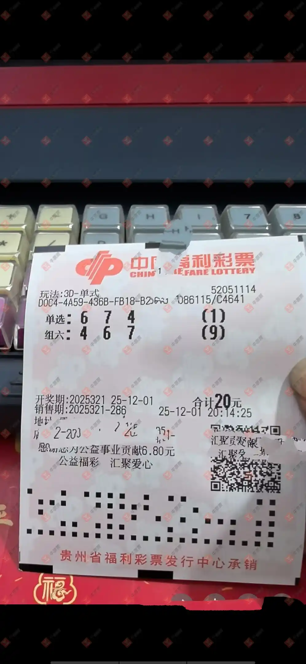 福彩3D 2025320期