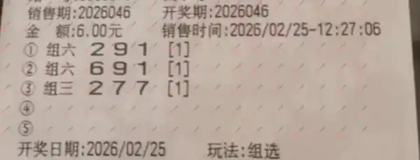 福彩3D 2026046期