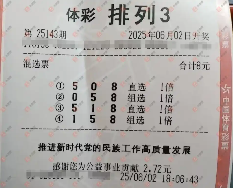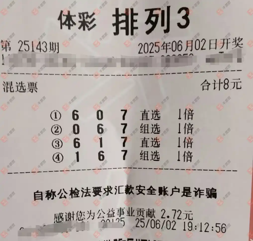 福彩3D 2025143期