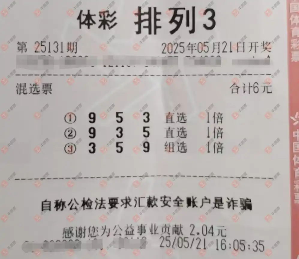 福彩3D 2025131期