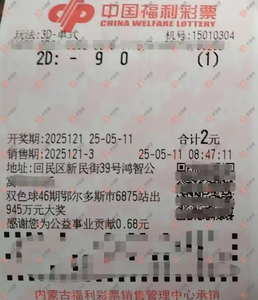 双色球 2025052期 晒中