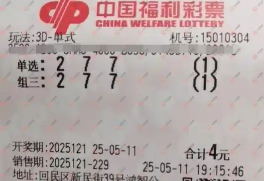 福彩3D 2025121期