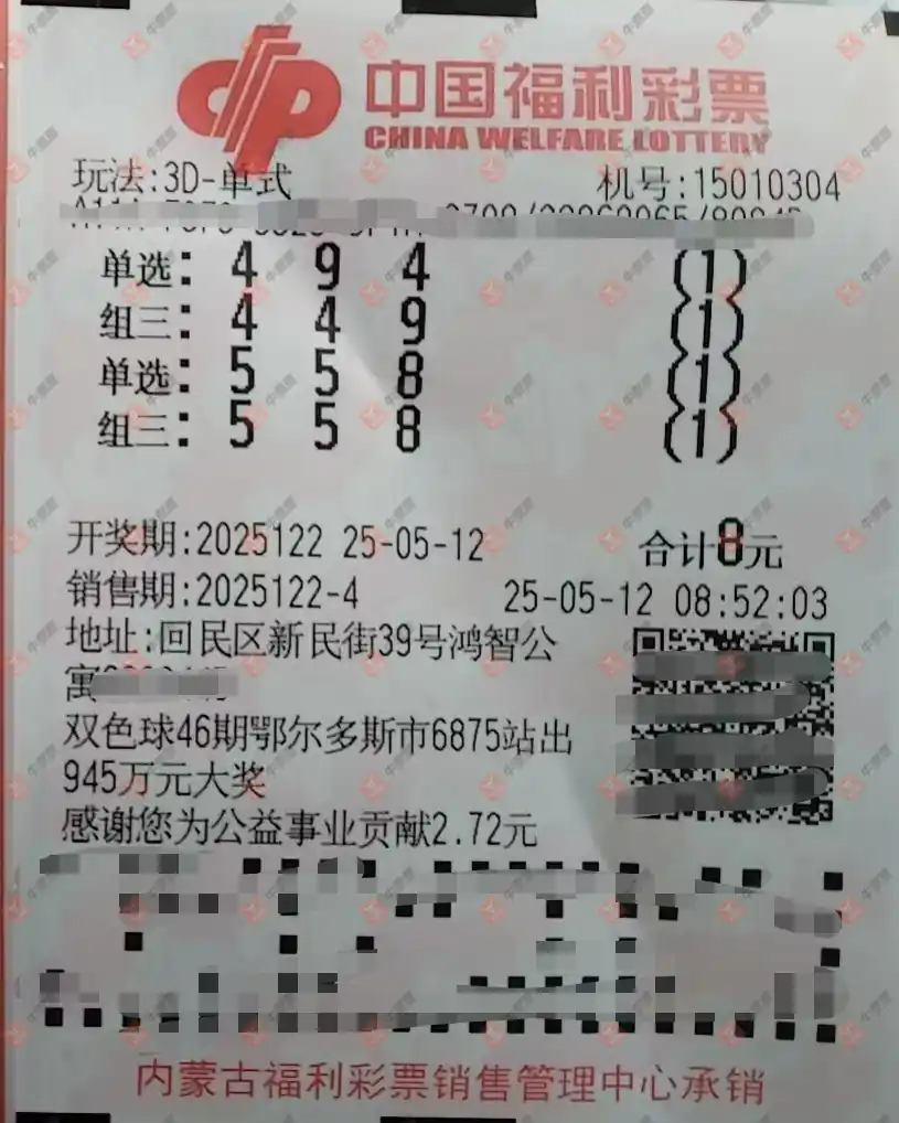 福彩3D 2025122期