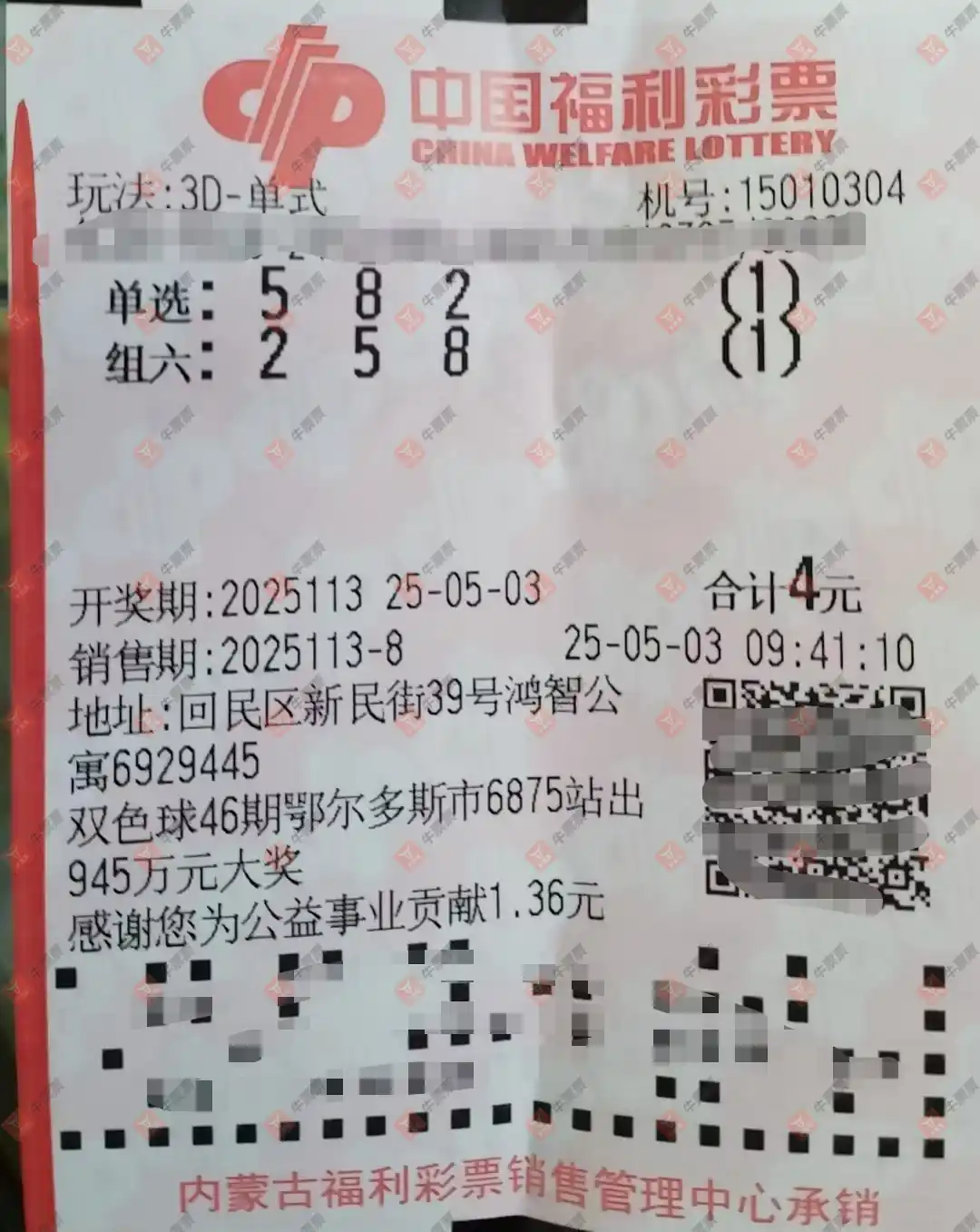 福彩3D 2025113期