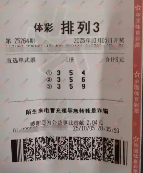 福彩3D 2025264期