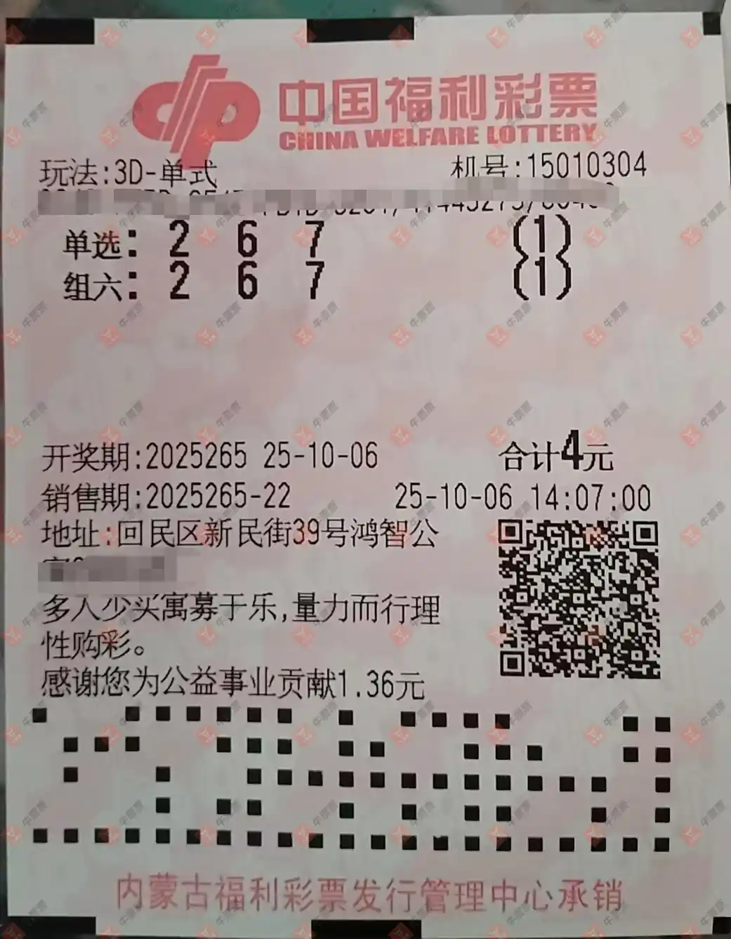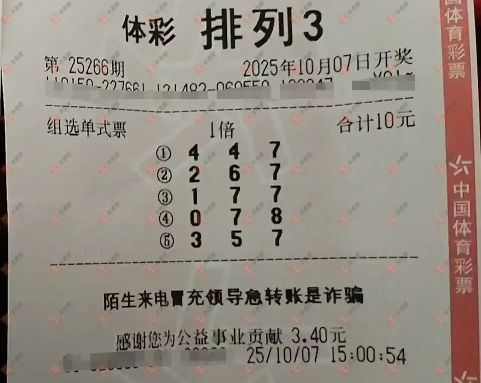 福彩3D 2025266期
