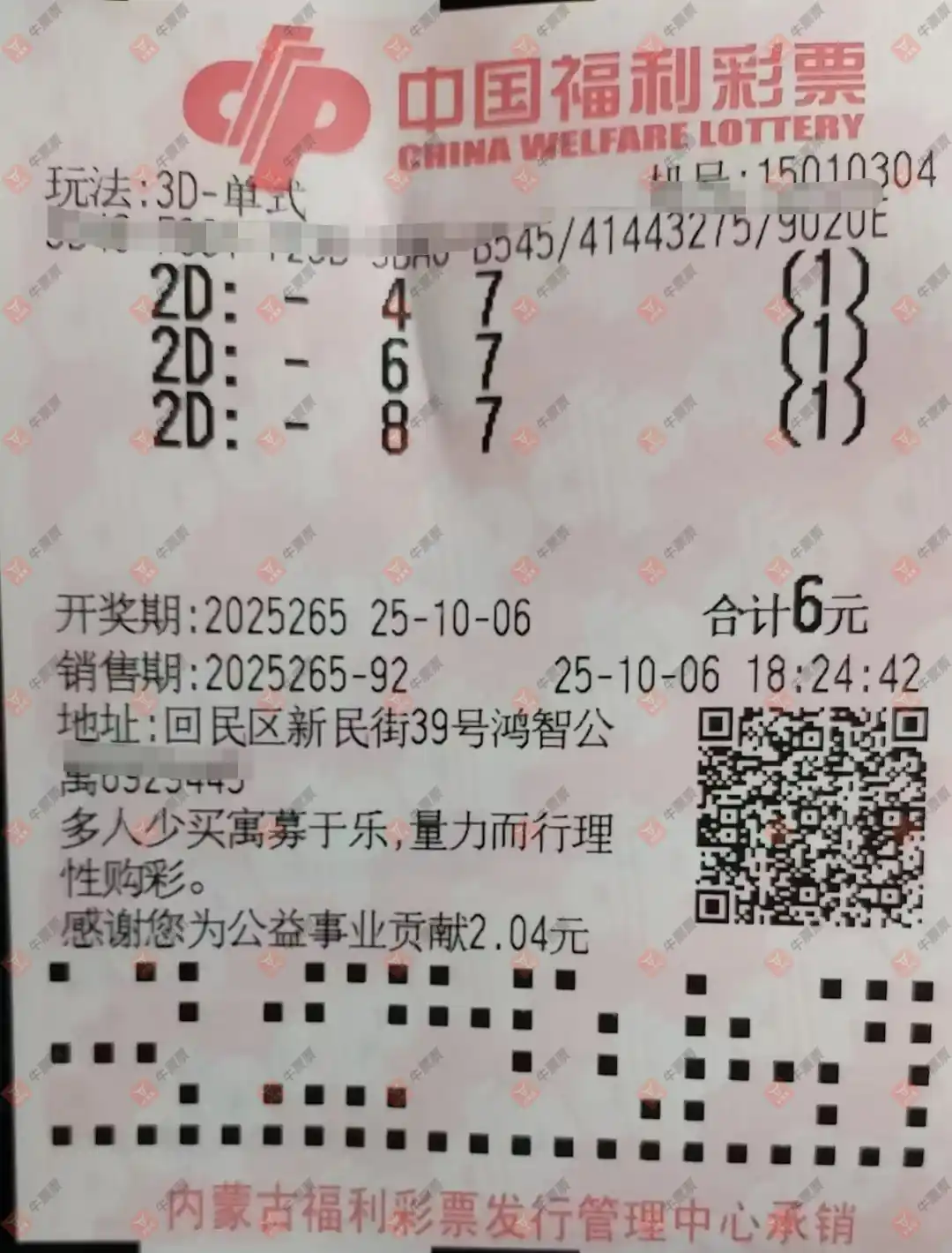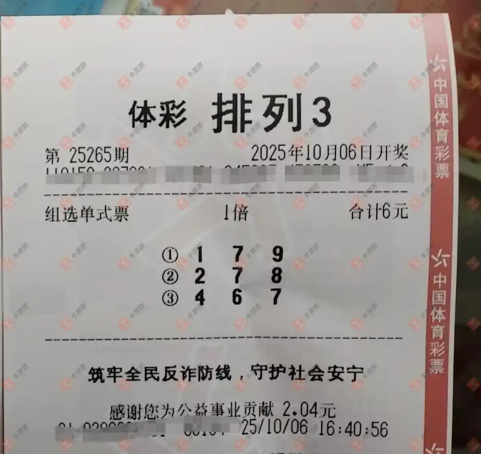 福彩3D 2025265期