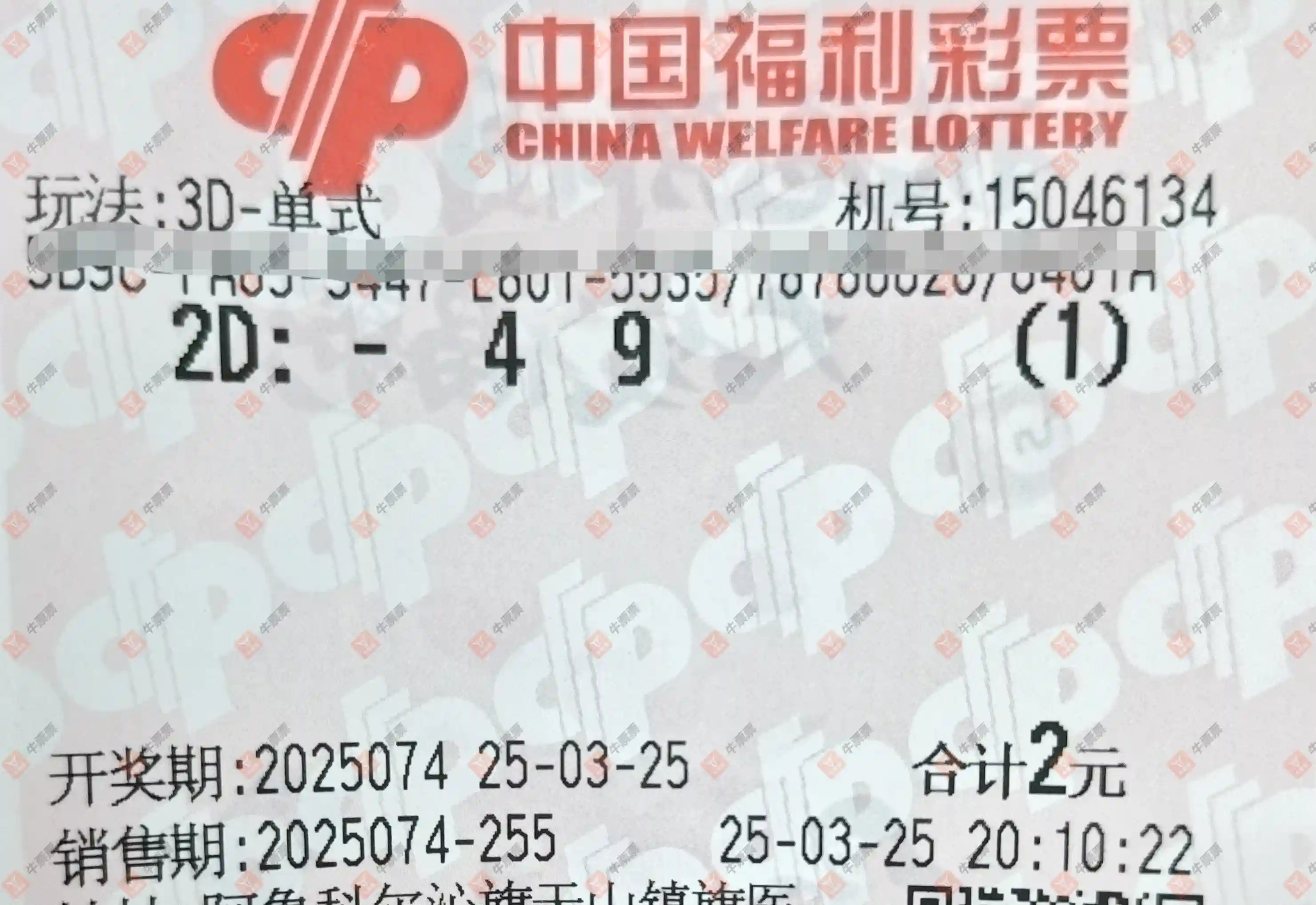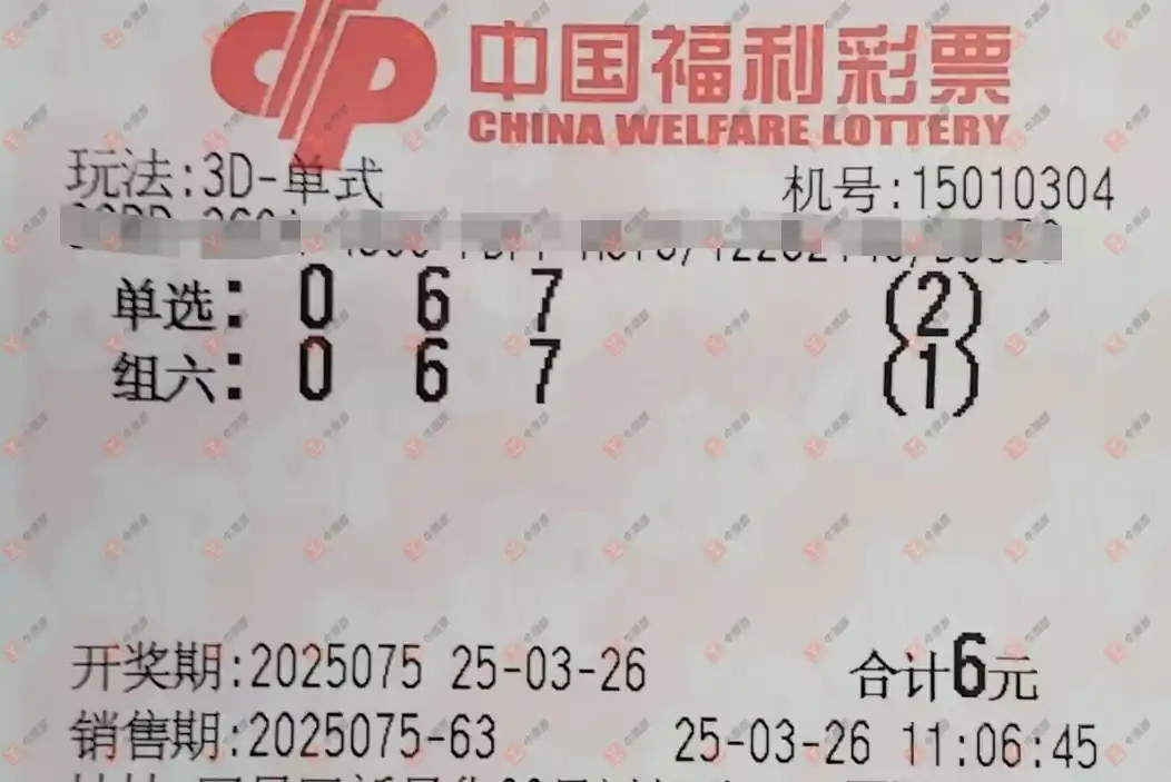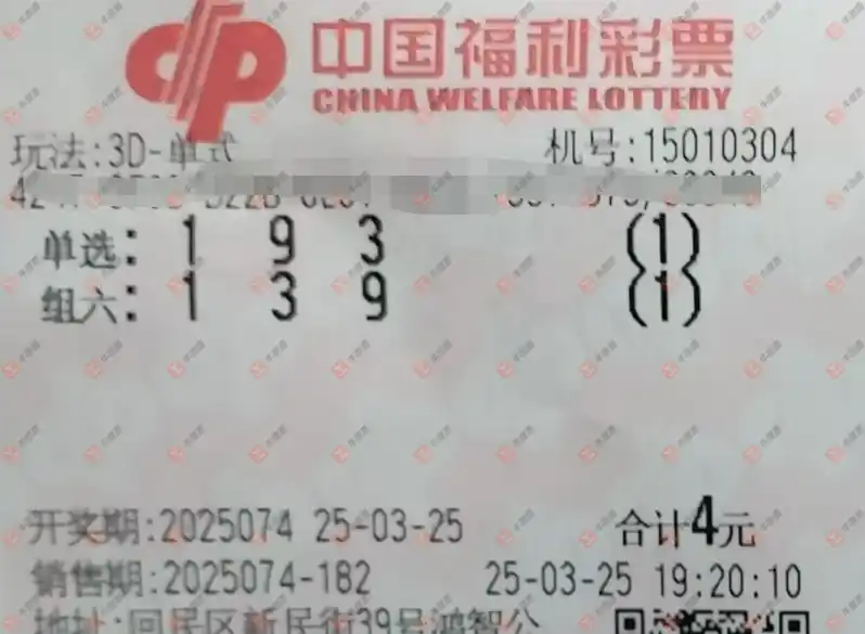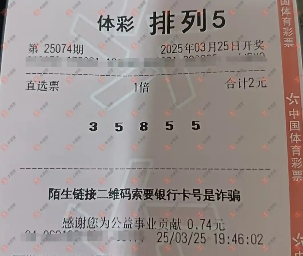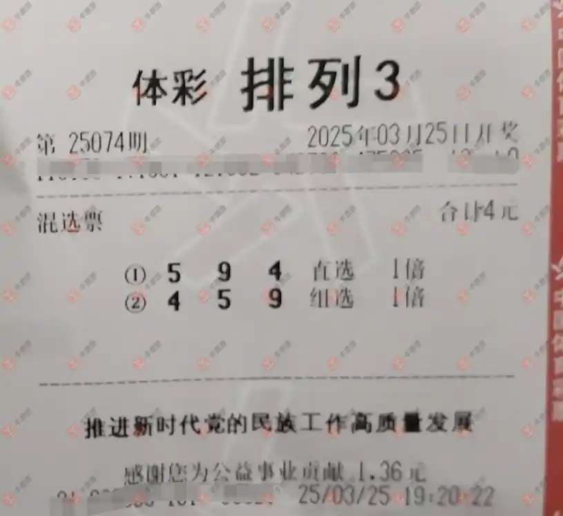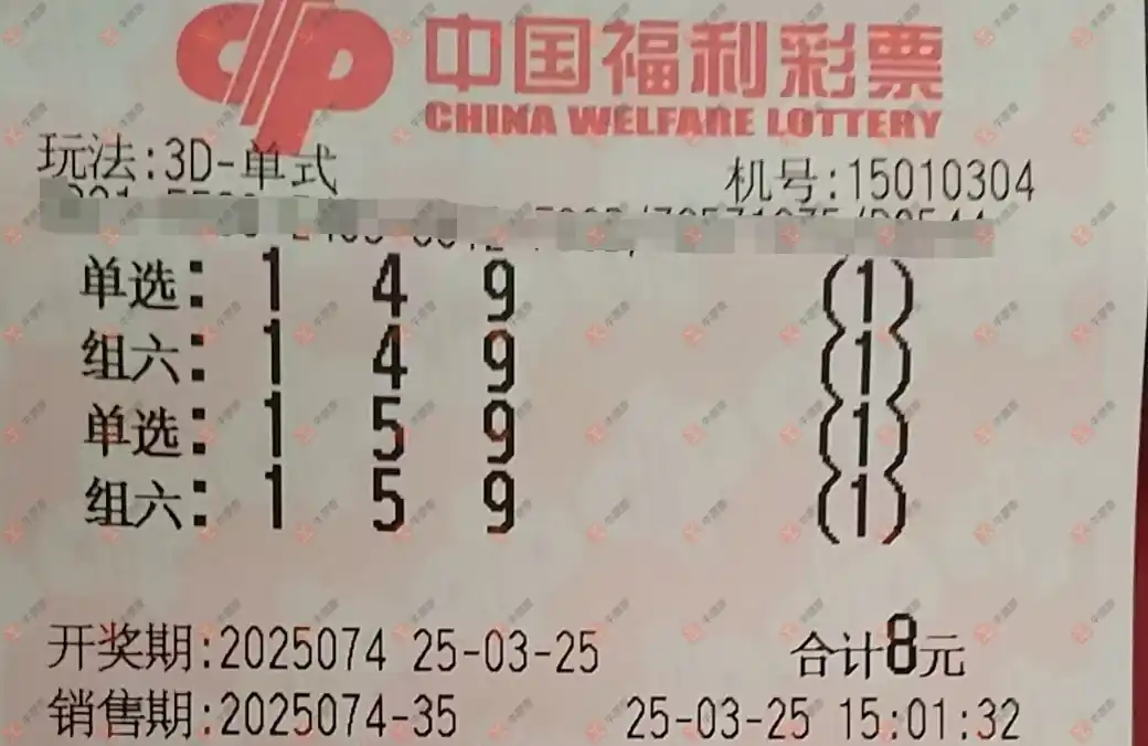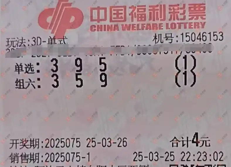 福彩3D 2025074期 晒中