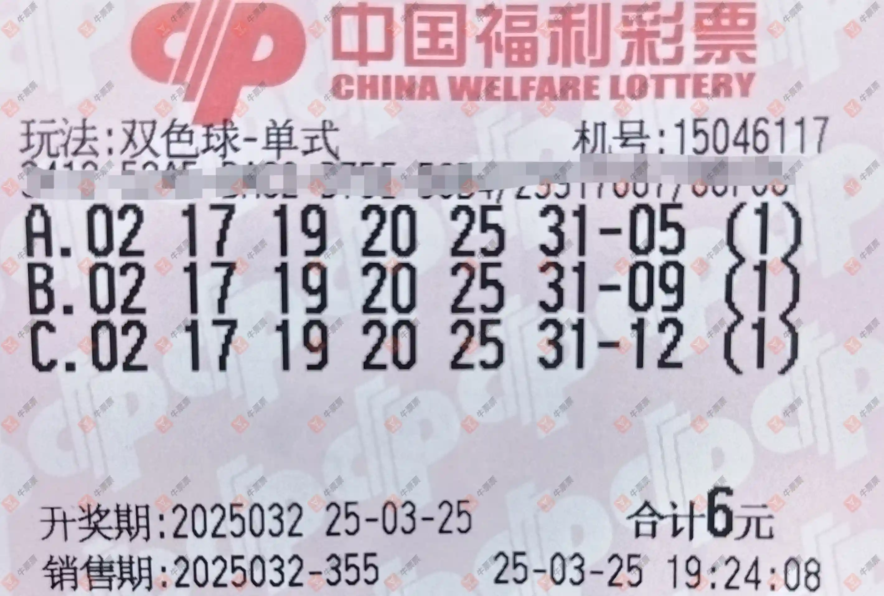 七星彩 2025032期 晒中
