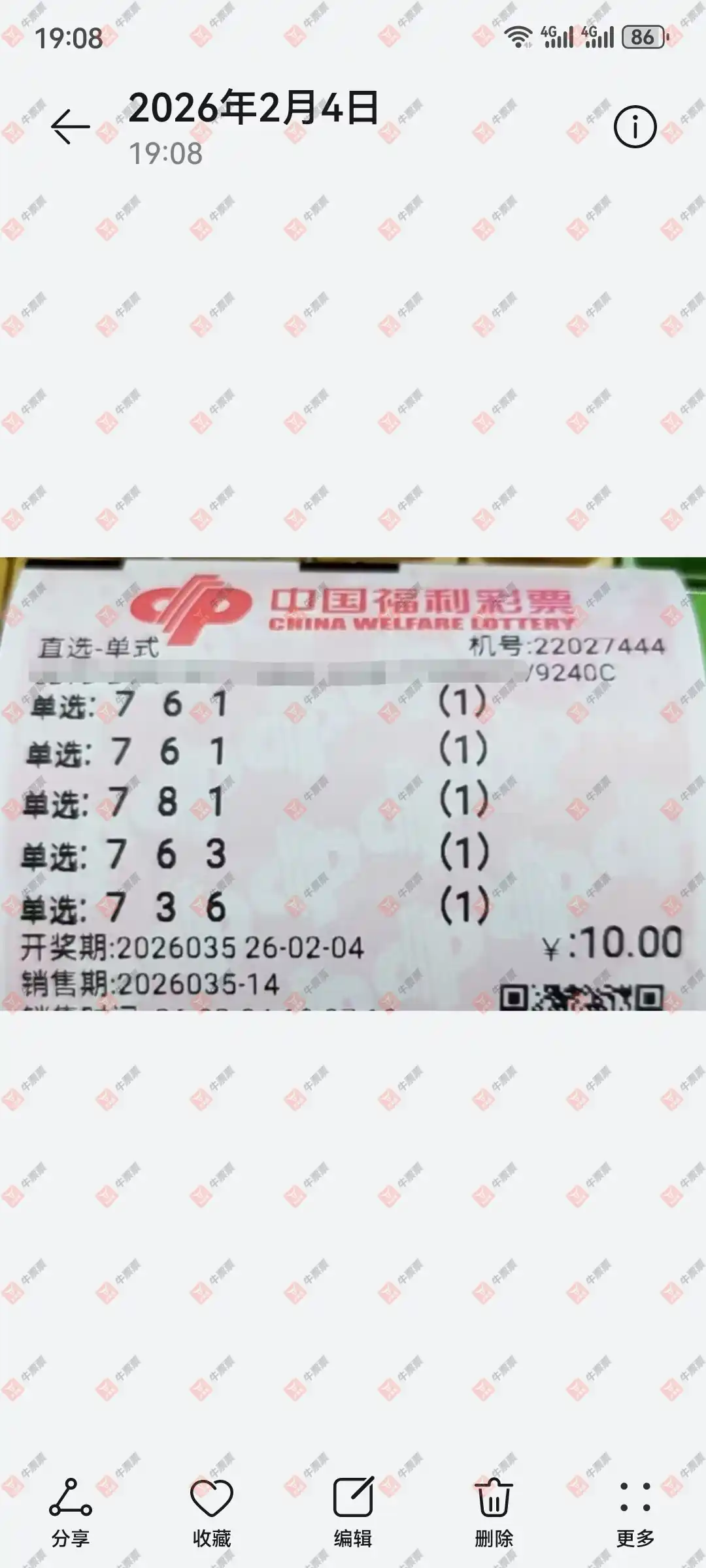 双色球 2026016期 晒中