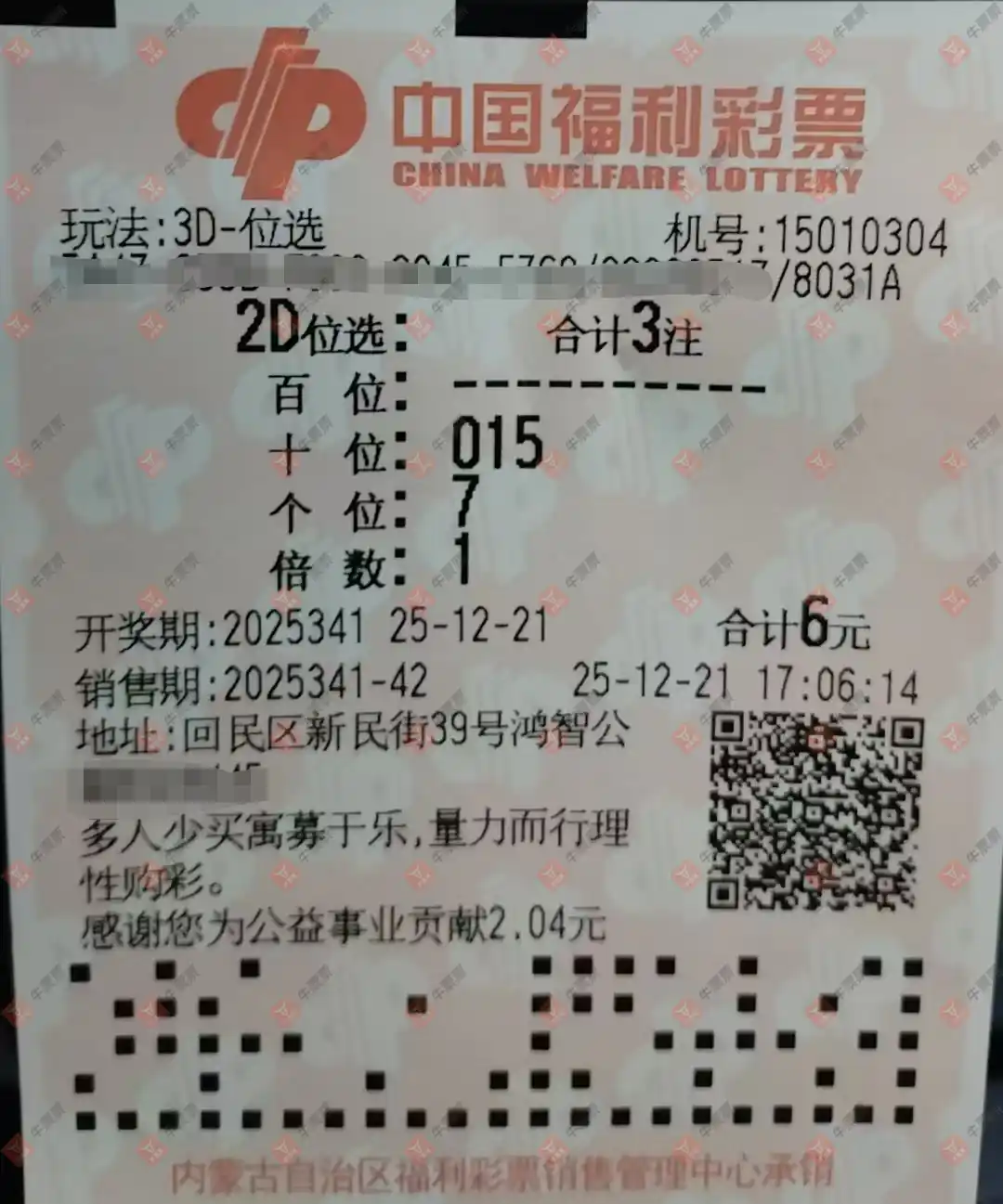 七星彩 2025147期 晒中