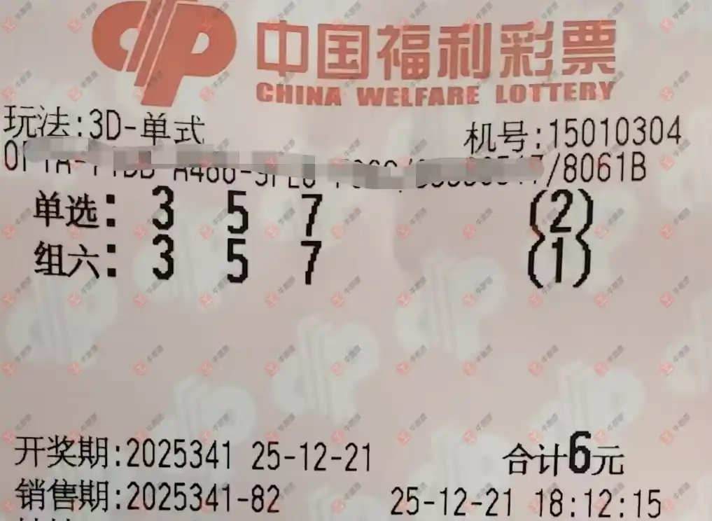 福彩3D 2025341期