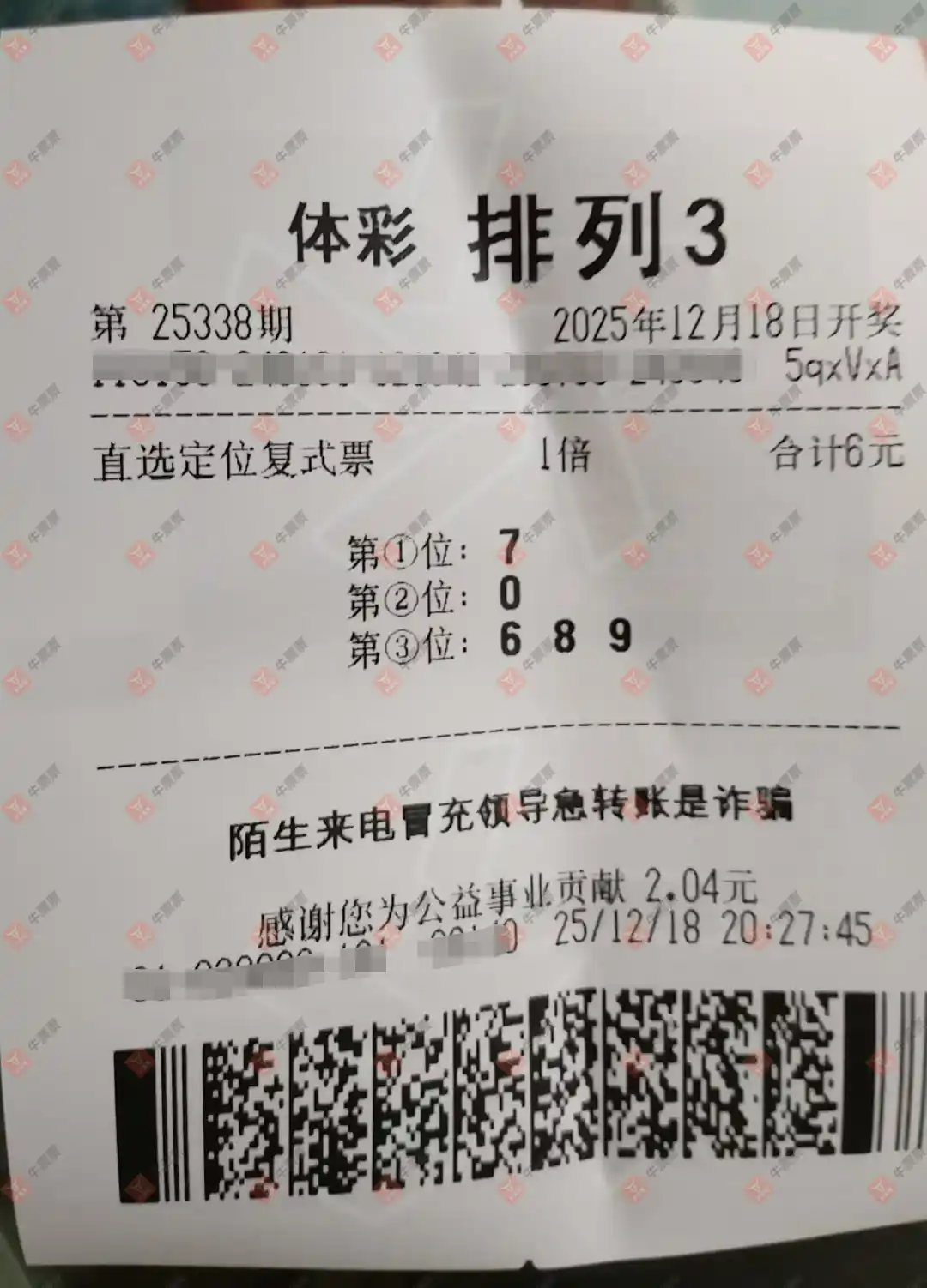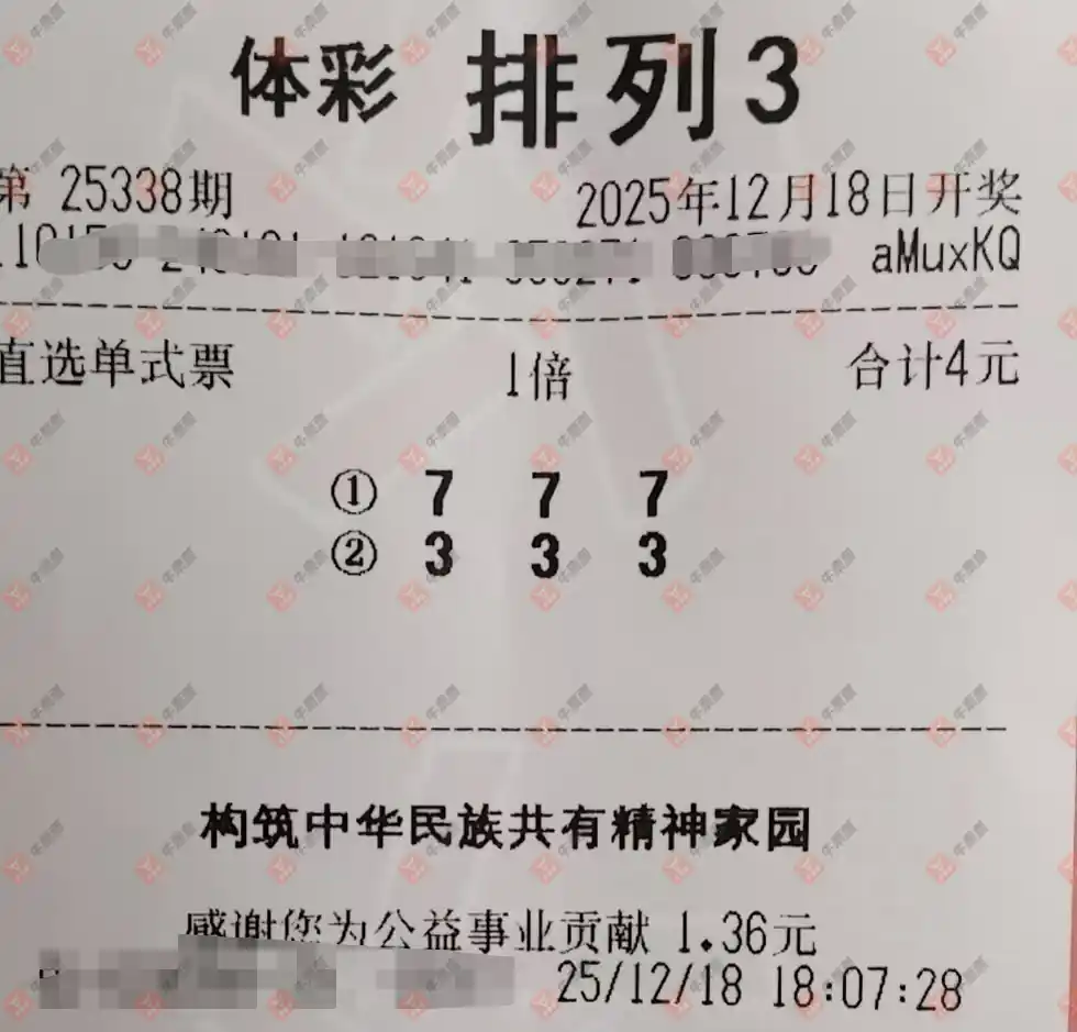 福彩3D 2025338期