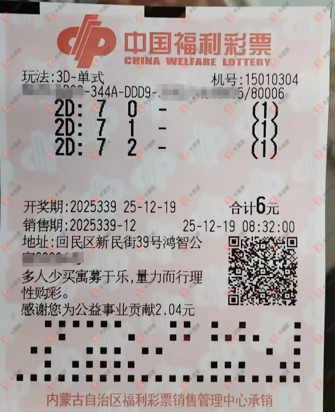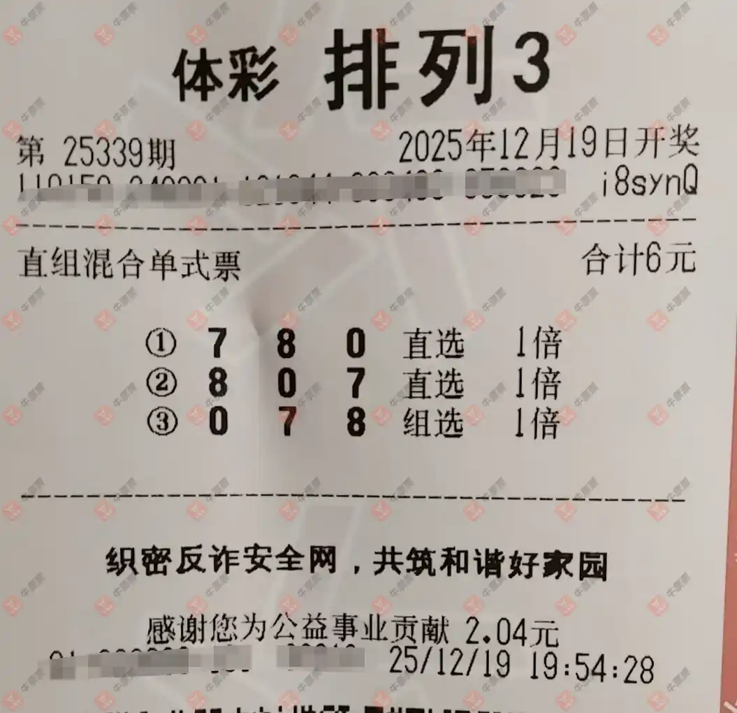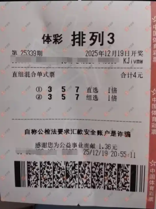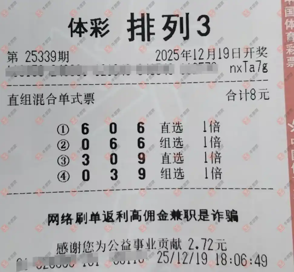 福彩3D 2025339期