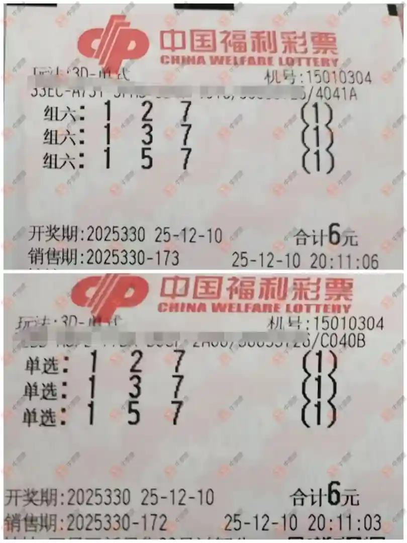 福彩3D 2025330期