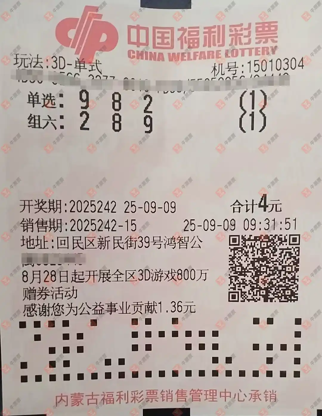 七星彩 2025104期 晒中