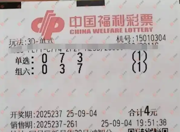 福彩3D 2025237期