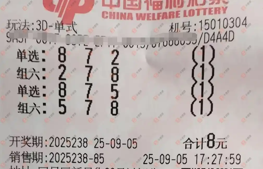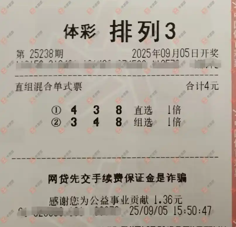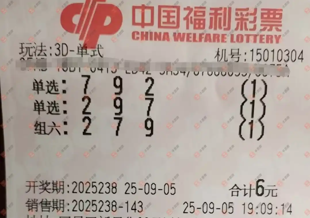 福彩3D 2025238期
