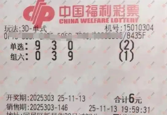 福彩3D 2025303期