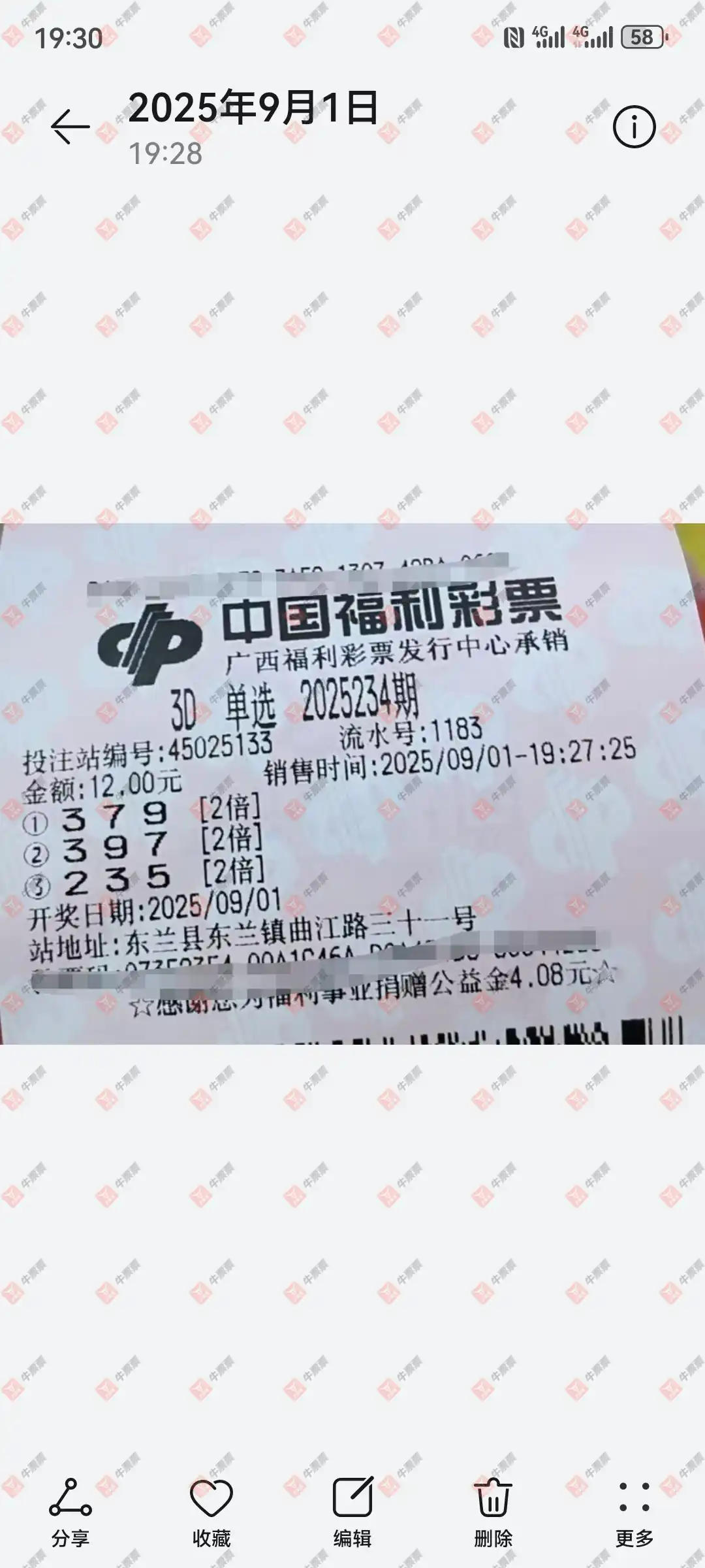 七星彩 2025101期 晒中