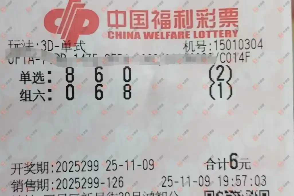 福彩3D 2025299期