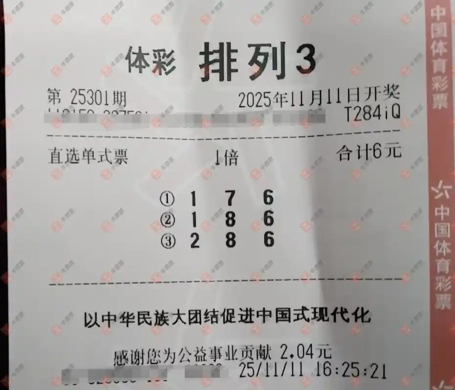 福彩3D 2025301期