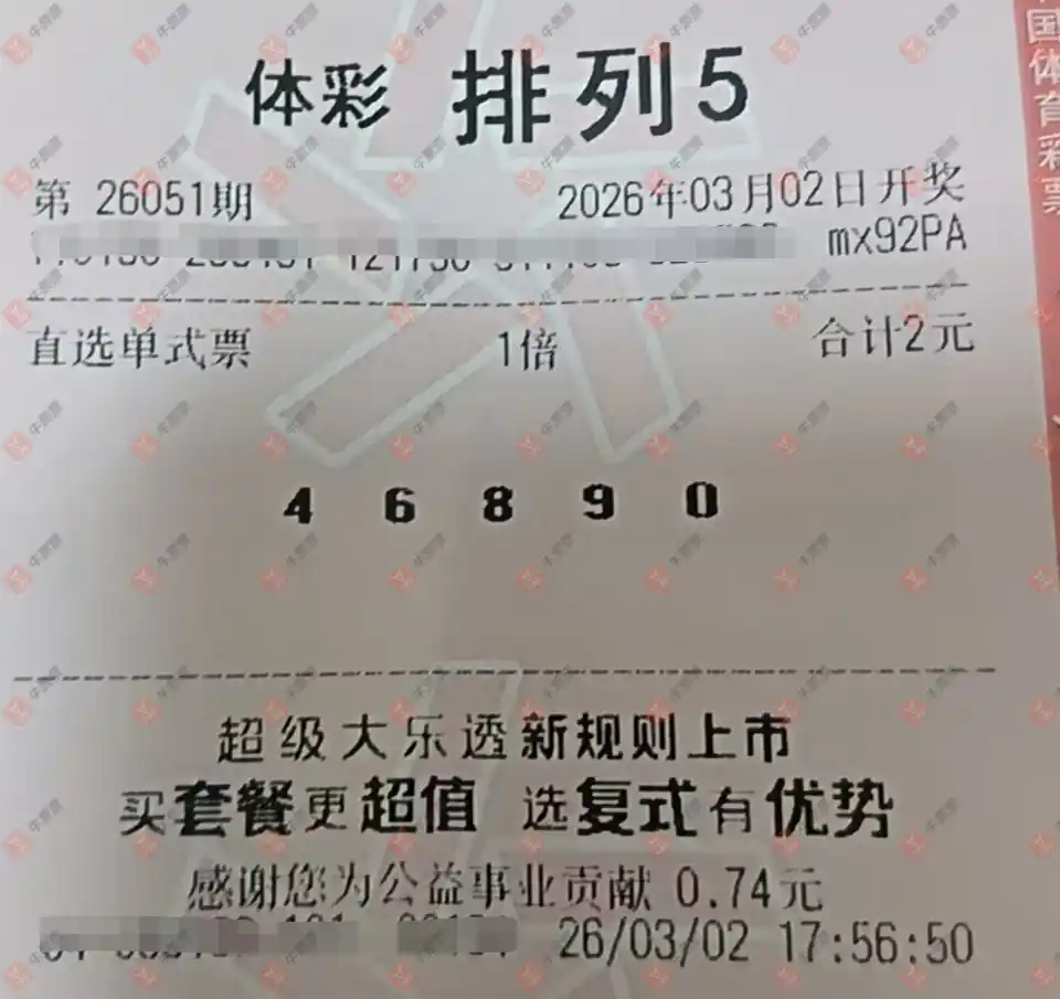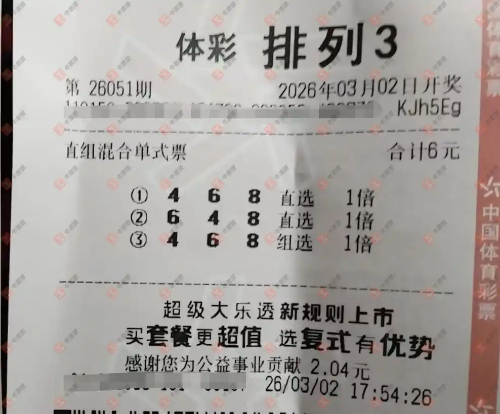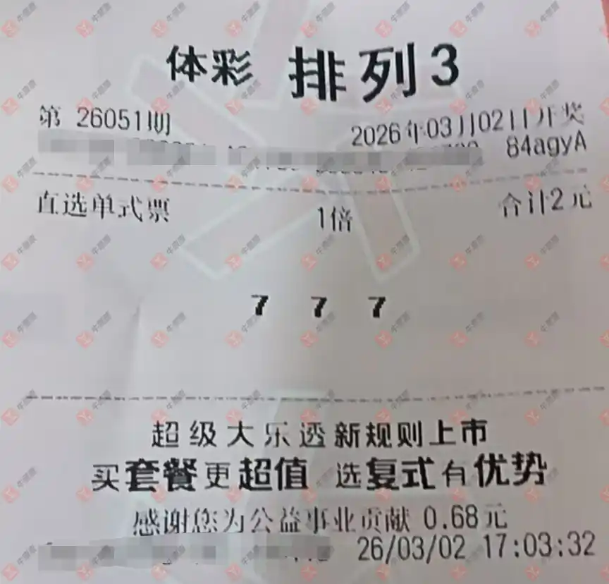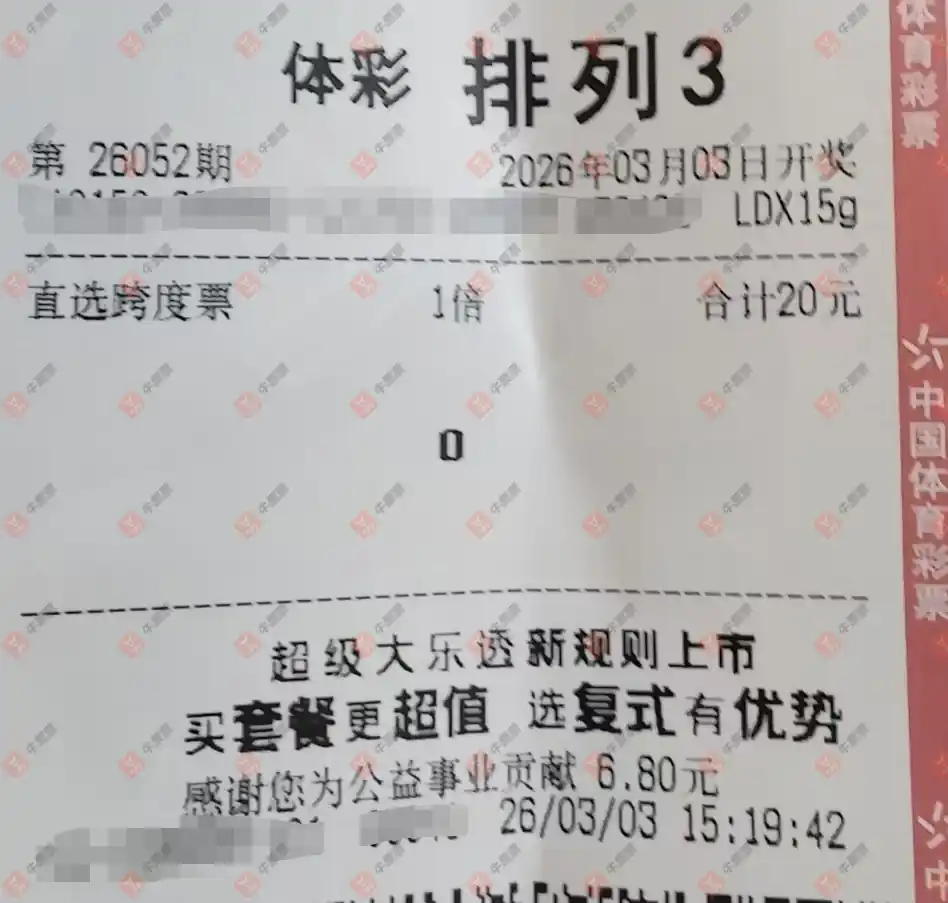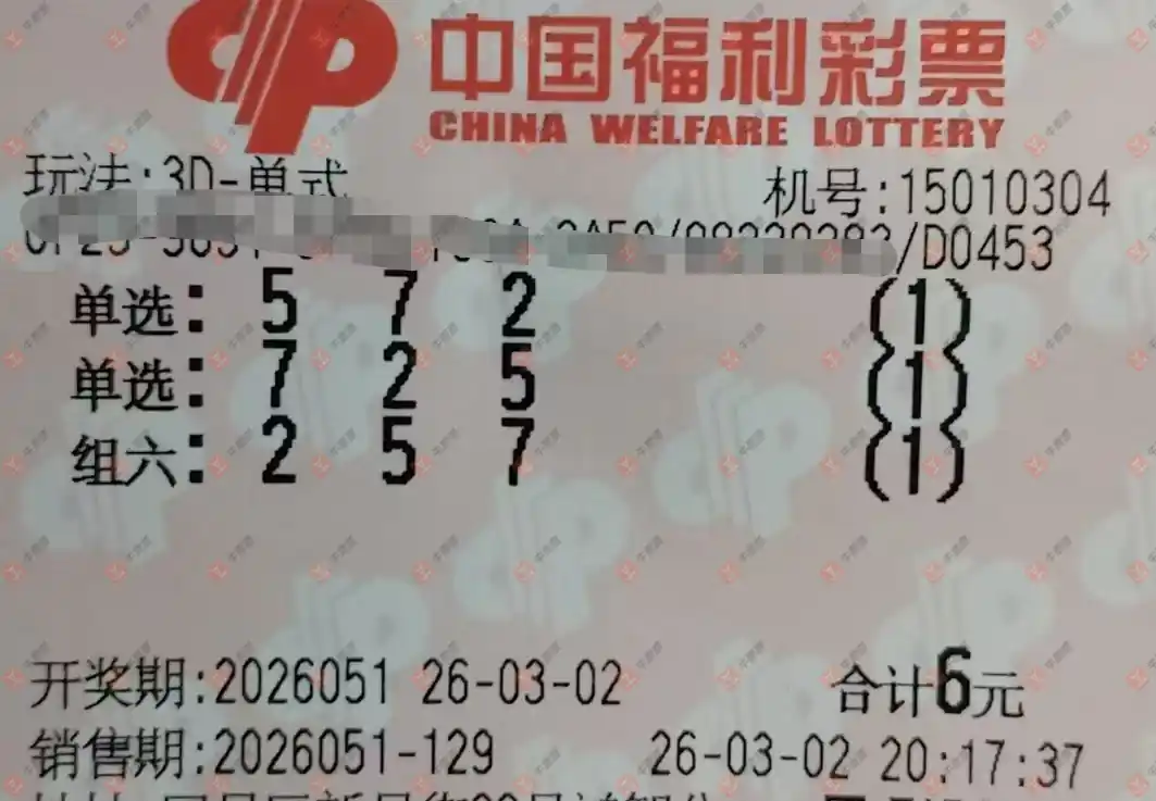 福彩3D 2026052期 晒中