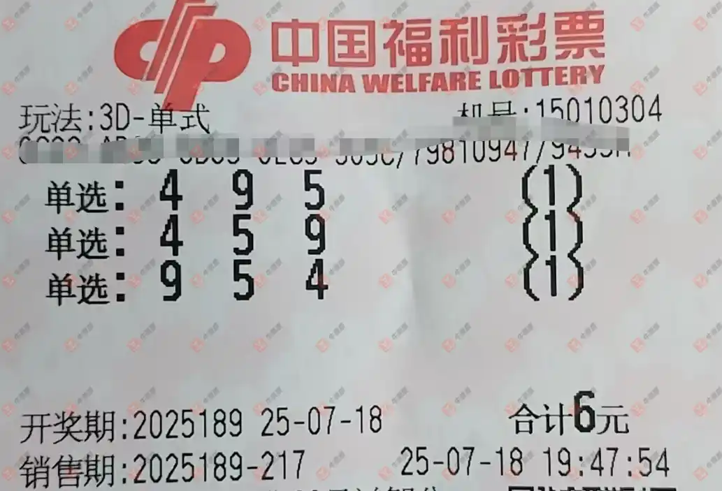 福彩3D 2025189期