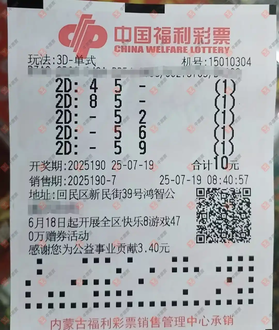 七星彩 2025081期 晒中