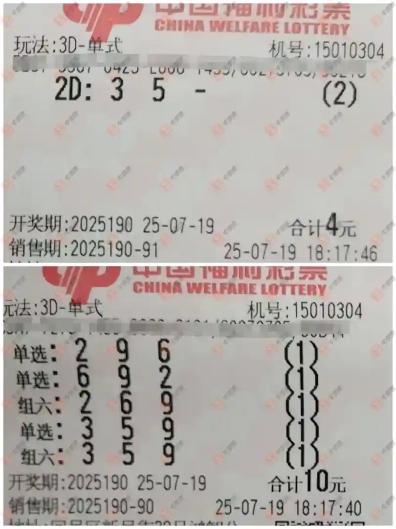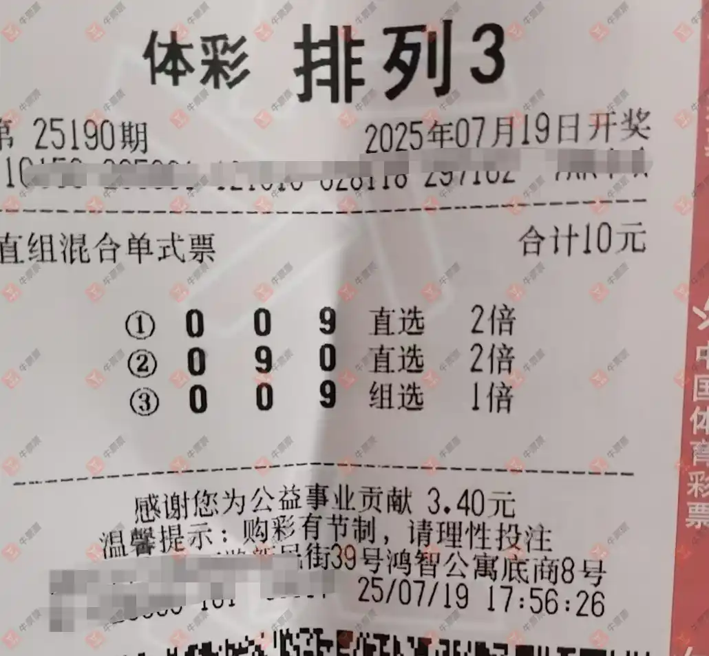 福彩3D 2025190期